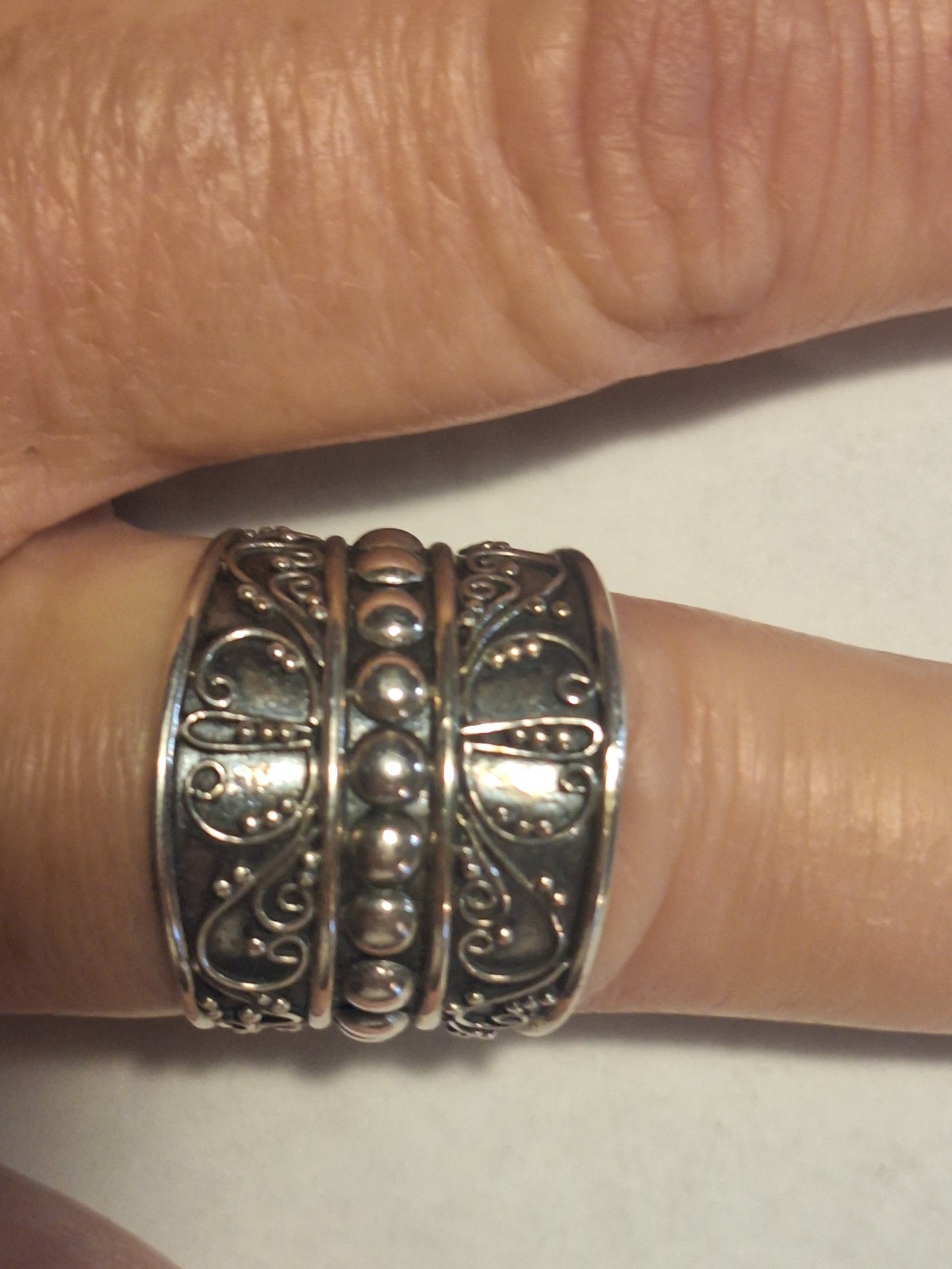 как выглядит Sterling Silver 925 Ornate Wide Band Ring Vintage Design No Stone фото