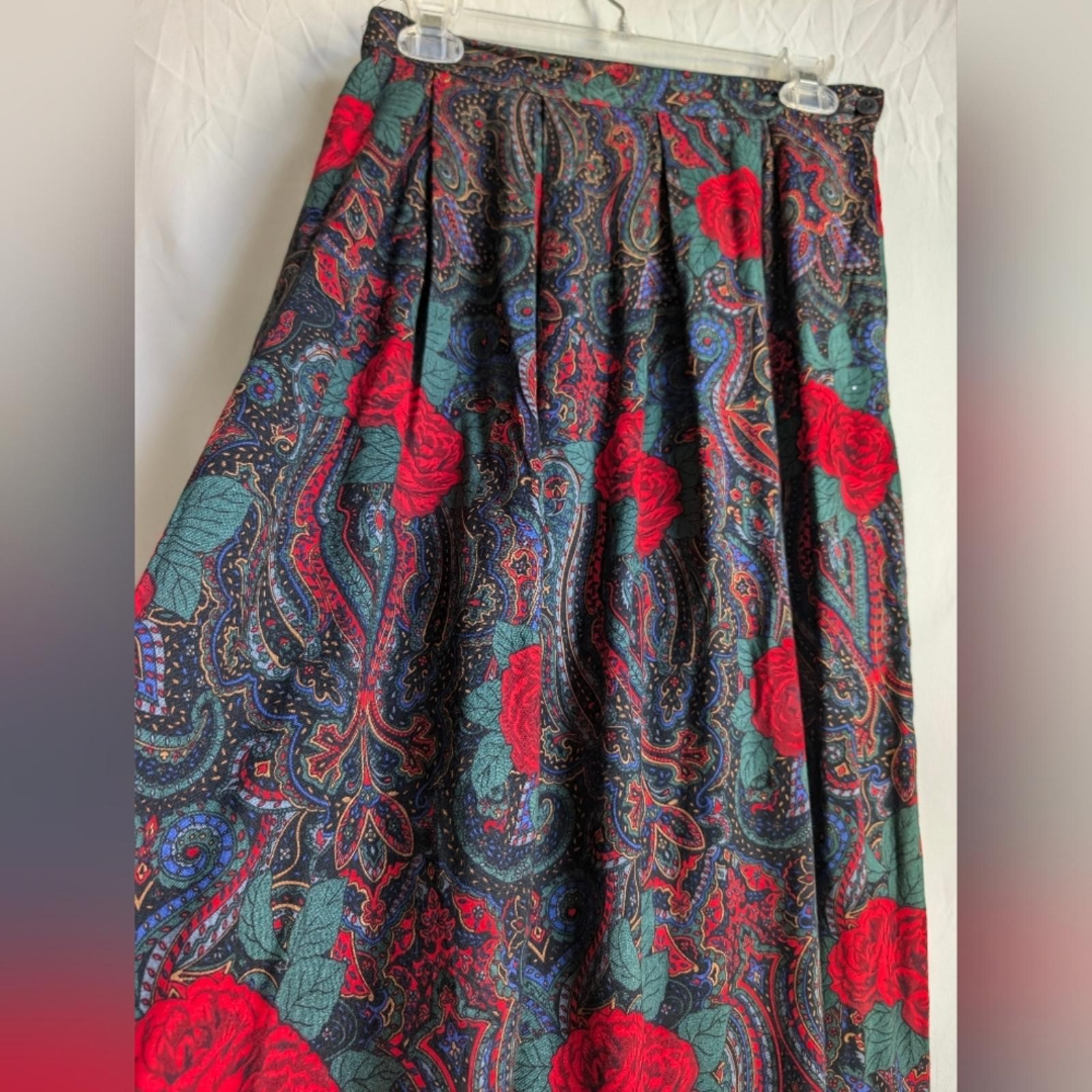 как выглядит Vintage Floral Rayon Midi Skirt 90s Boho Floral фото