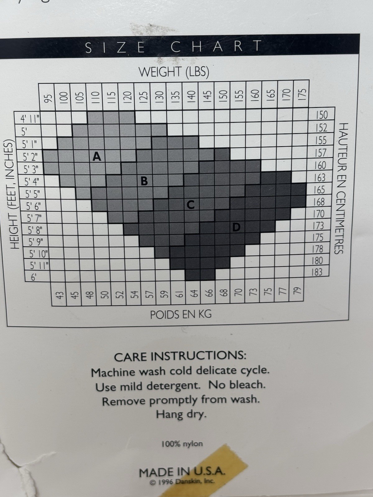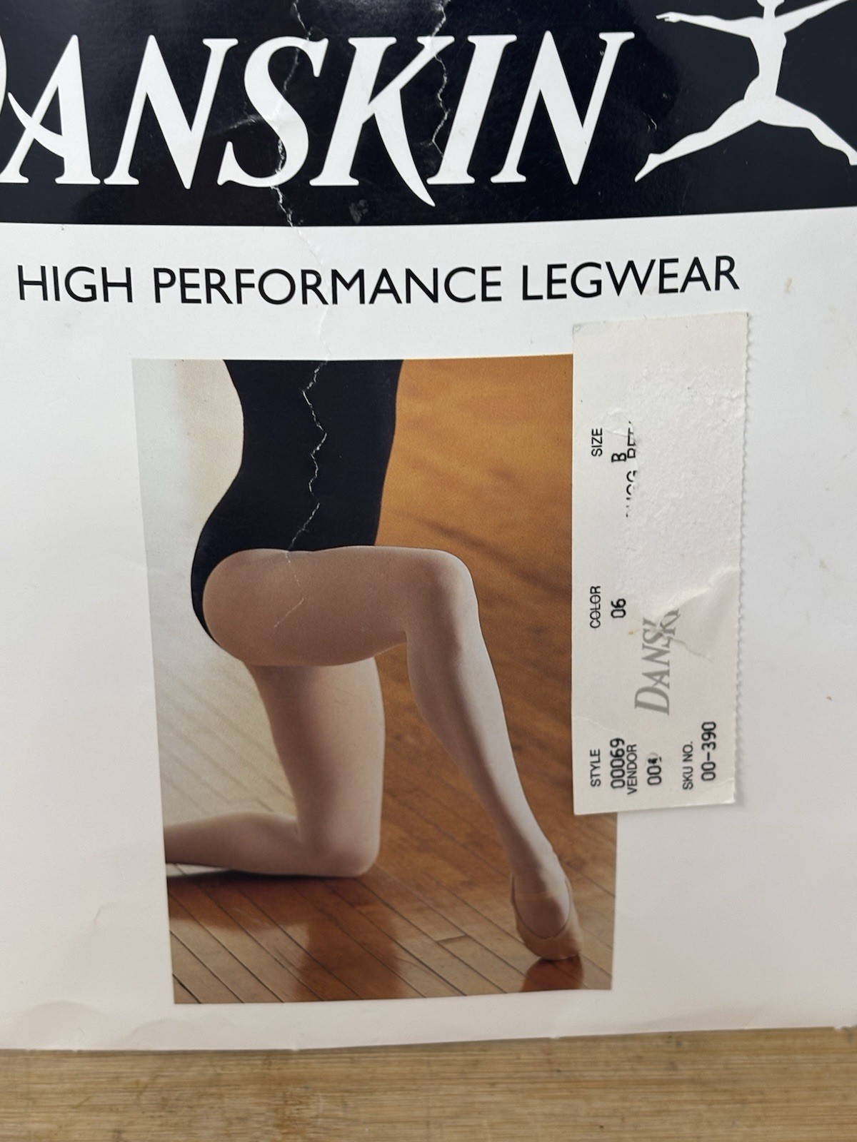 Y2K Danskin DANCE Legwear 69 Size B Suntan Footed Tights Run Resistance Nylons