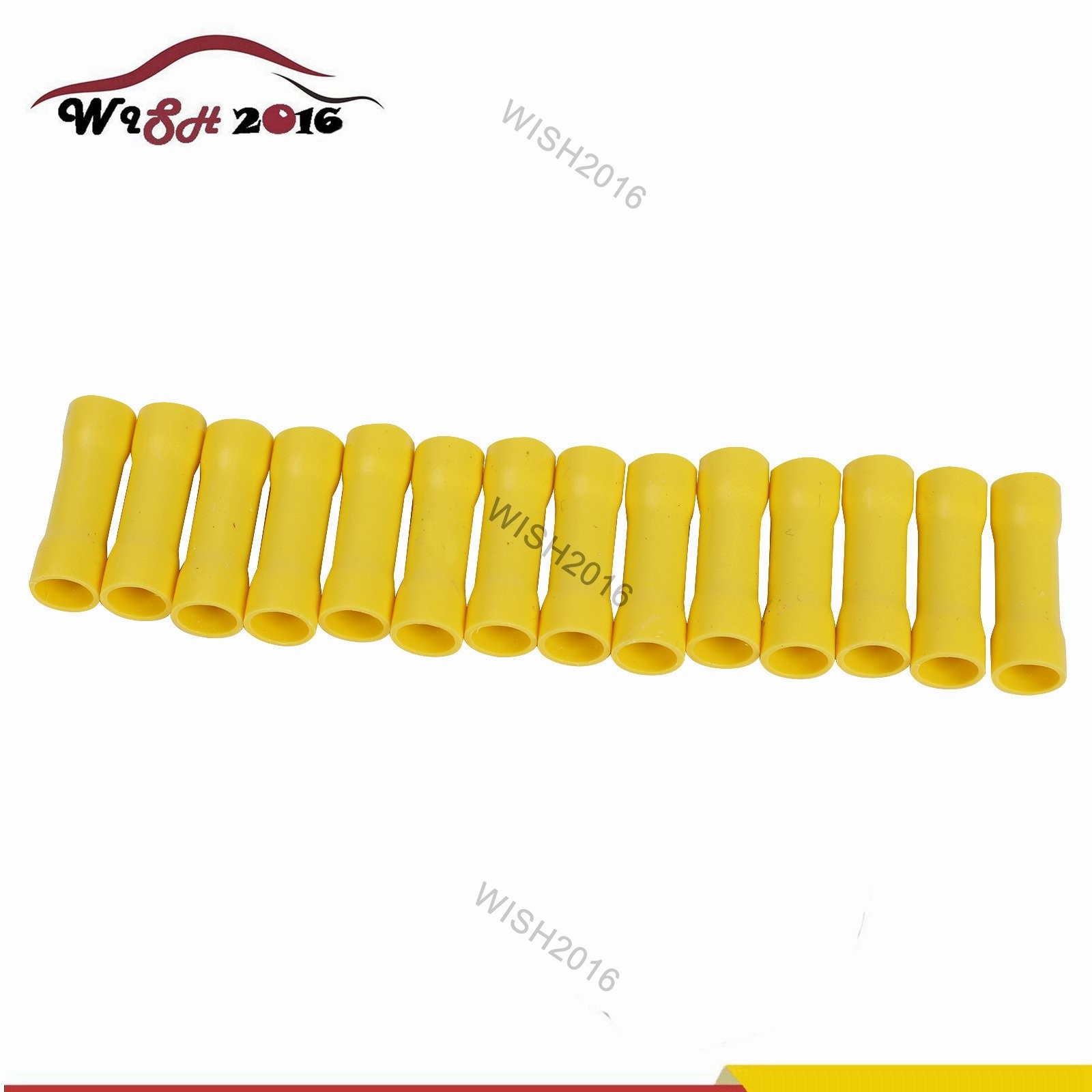 как выглядит 100Pcs 12-10 Gauge Vinyl Fully Insulated Copper Wire Butt Connectors Yellow New фото