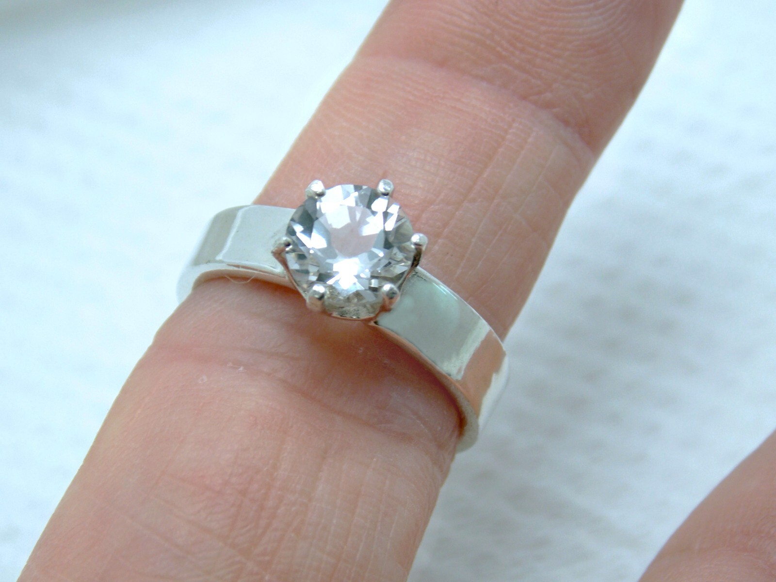 как выглядит NATURAL WHITE TOPAZ SIZE 7 RING 925 STERLING SILVER USA MADE 4.31 grams фото