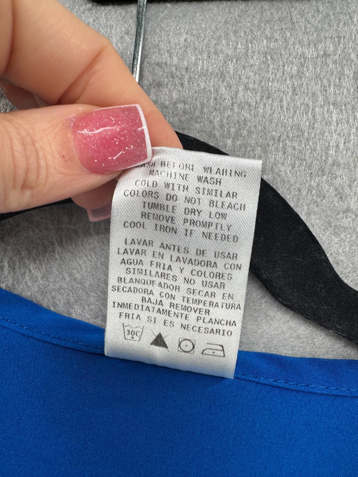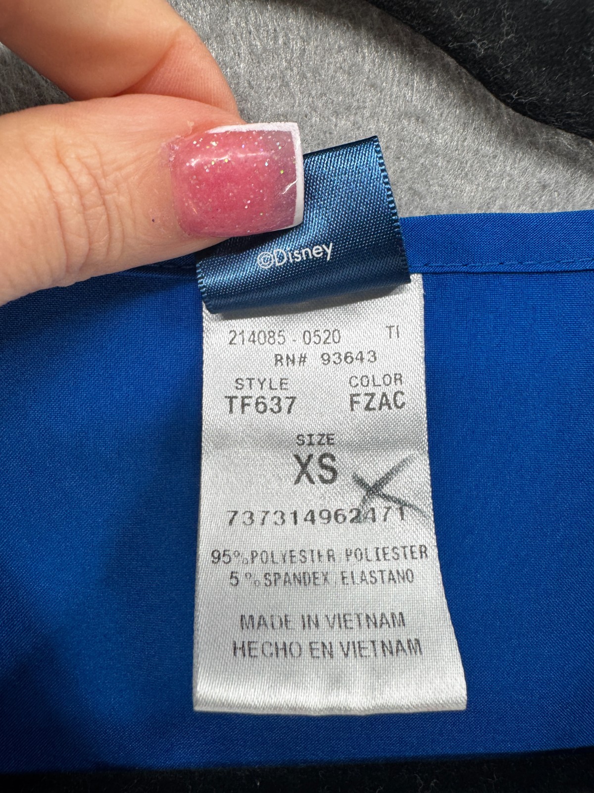 как выглядит Disney Frozen Elsa Scrub Top Womens XS Blue White Character Kangaroo Pocket фото