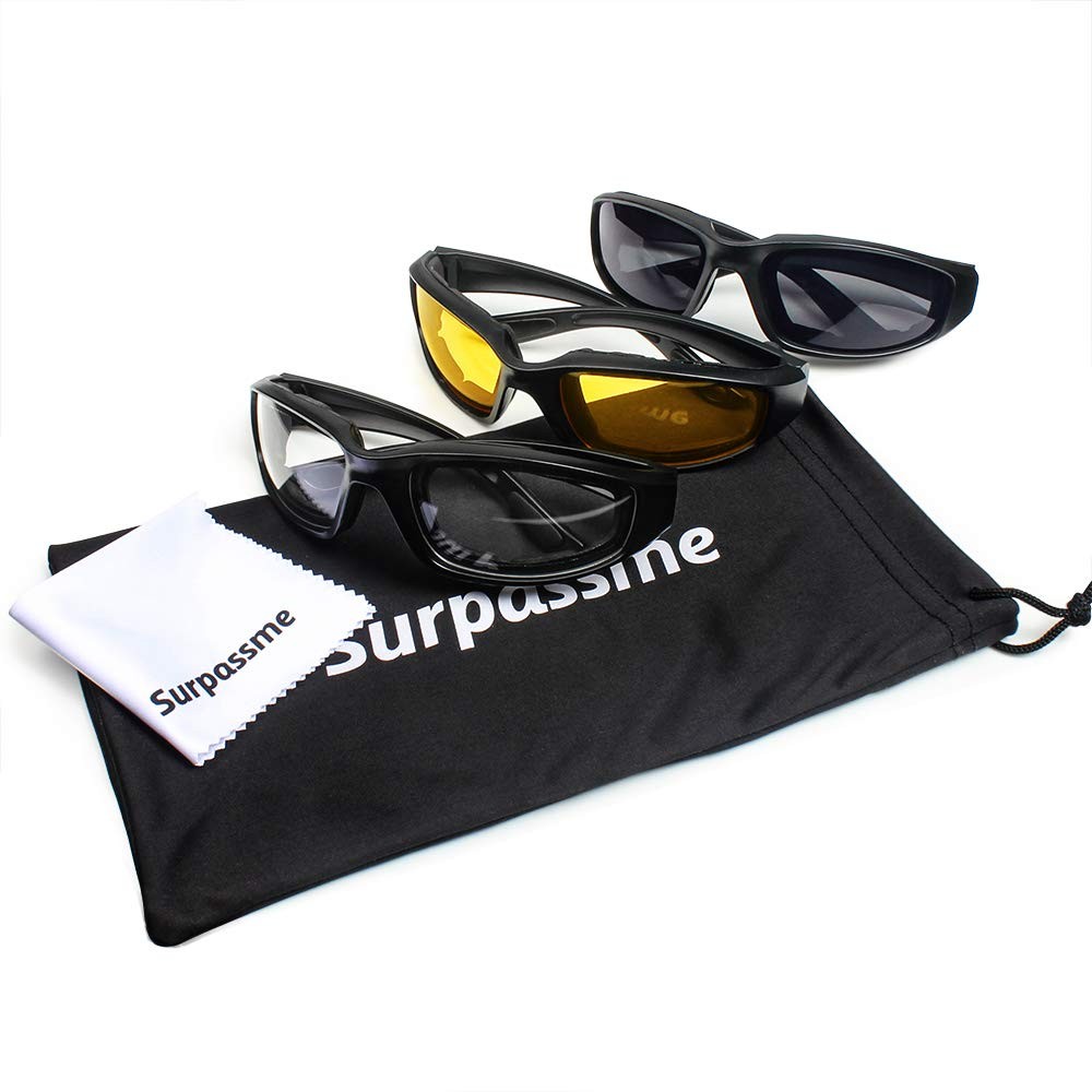 3 Pair Motorcycle Riding Glasses Padding Goggles UV Protection Dustproof Wind...