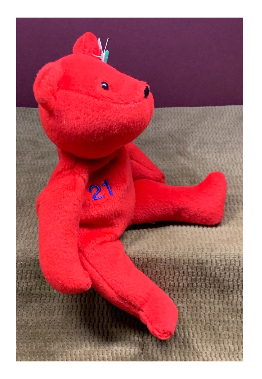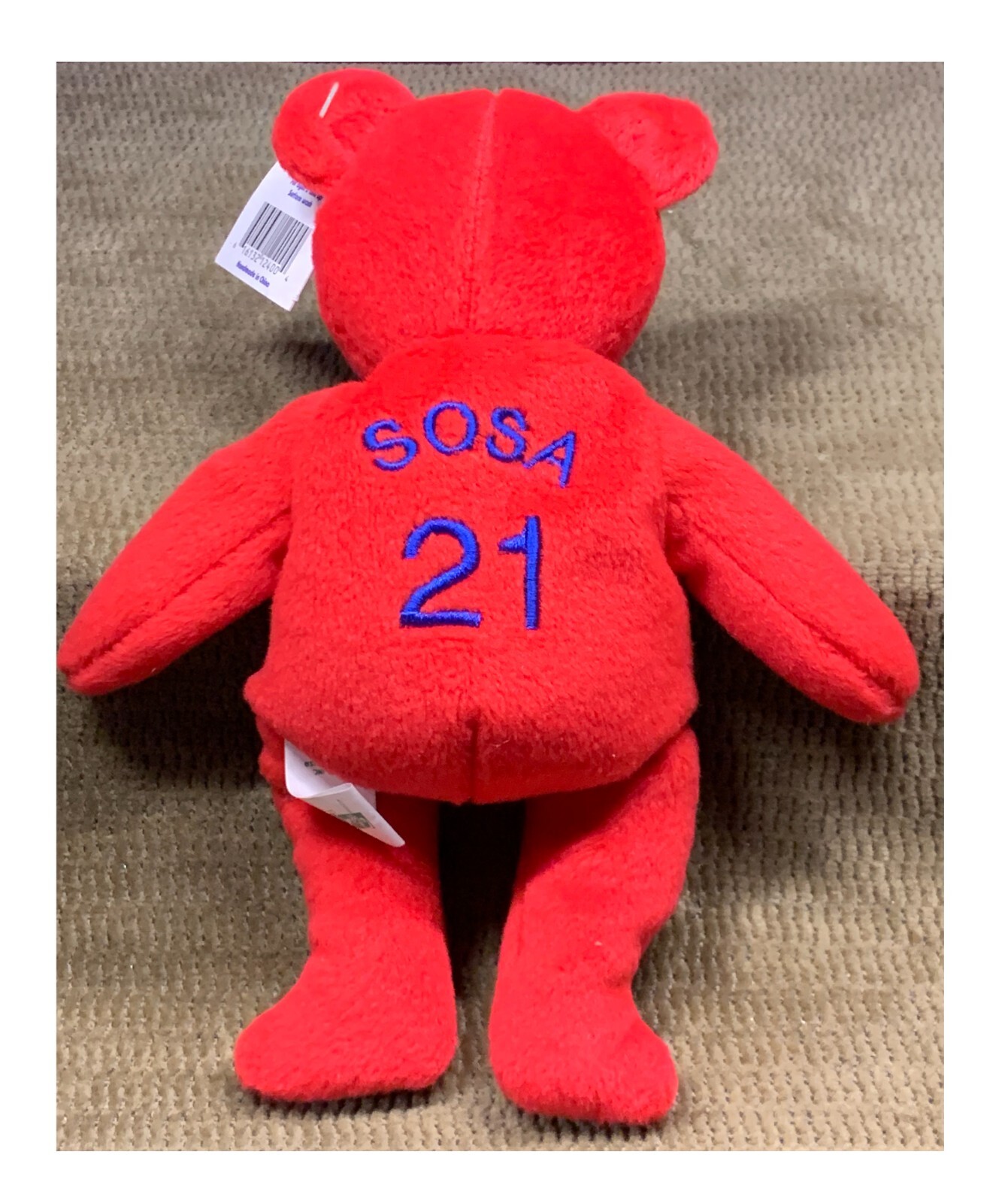 1998 VINTAGE BAMM BEANOS SAMMY SOSA 21 RED BEAR PLUSH/STUFFED ANIMAL