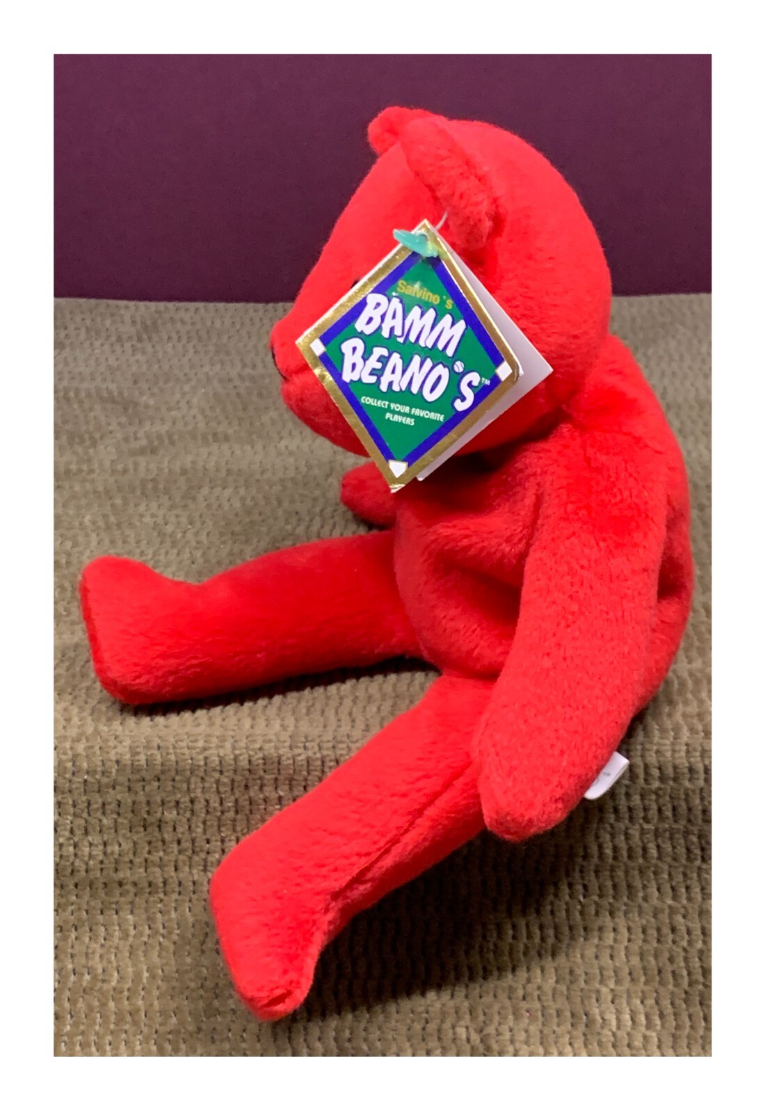 как выглядит 1998 VINTAGE BAMM BEANO"S SAMMY SOSA 21 RED BEAR PLUSH/STUFFED ANIMAL фото