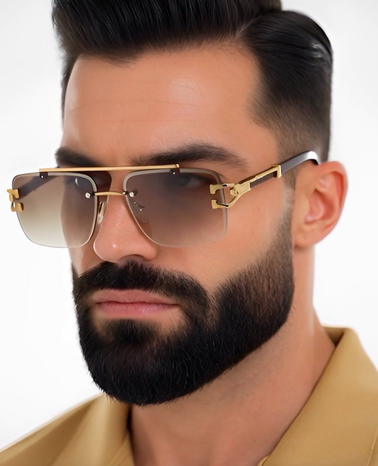 Steampunk Rimless Square Sunglasses Men 2026 Luxury Designer Gold Classy Shape