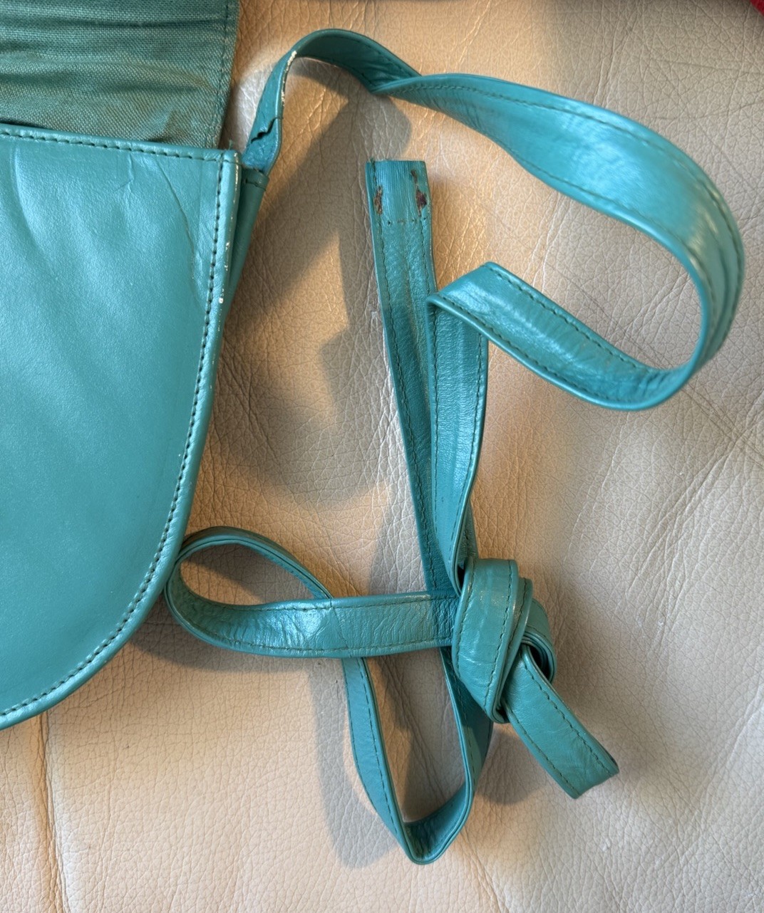 как выглядит VTG 70/80s Teal Blue Purse Boho Retro  strap Broken GENUINE LEATHER India фото