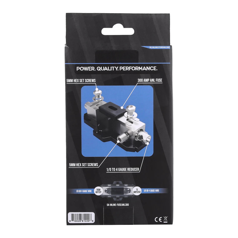 SKAR AUDIO 1/0 OR 4 GAUGE 300 AMP INLINE ANL FUSE HOLDER - WITH 300 ANL FUSE US