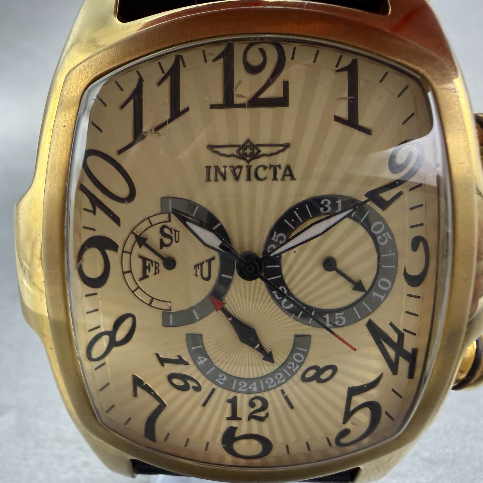 Invicta Lupah Watch Men 47mm Gold Dial Gold Tone Rectangle Daydate New Battery A