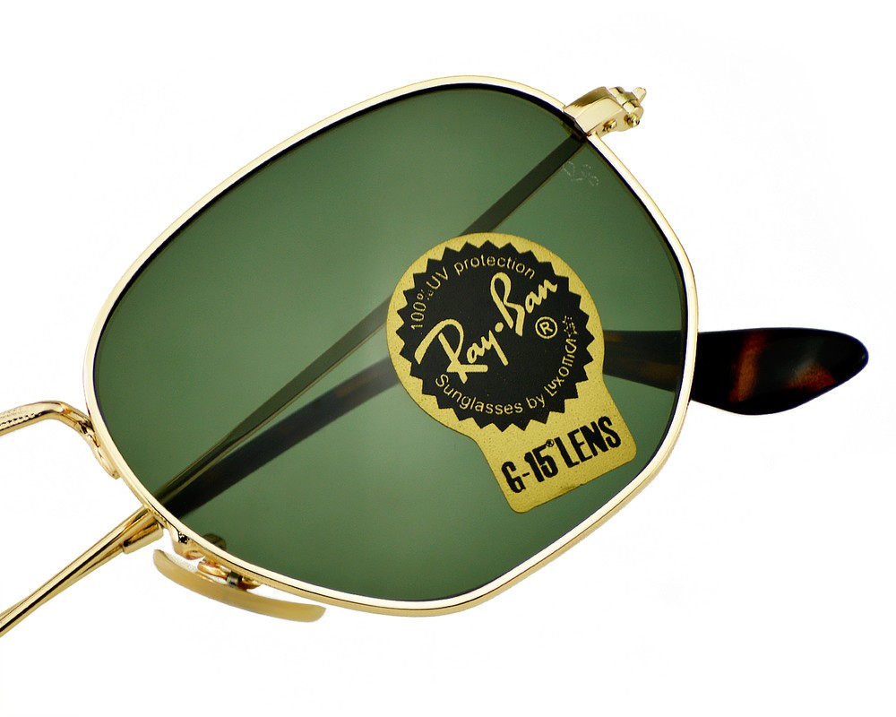 Ray-Ban Sunglasses RB3548N Hexagonal Flat Gold Frame Green Classic Lens 51mm