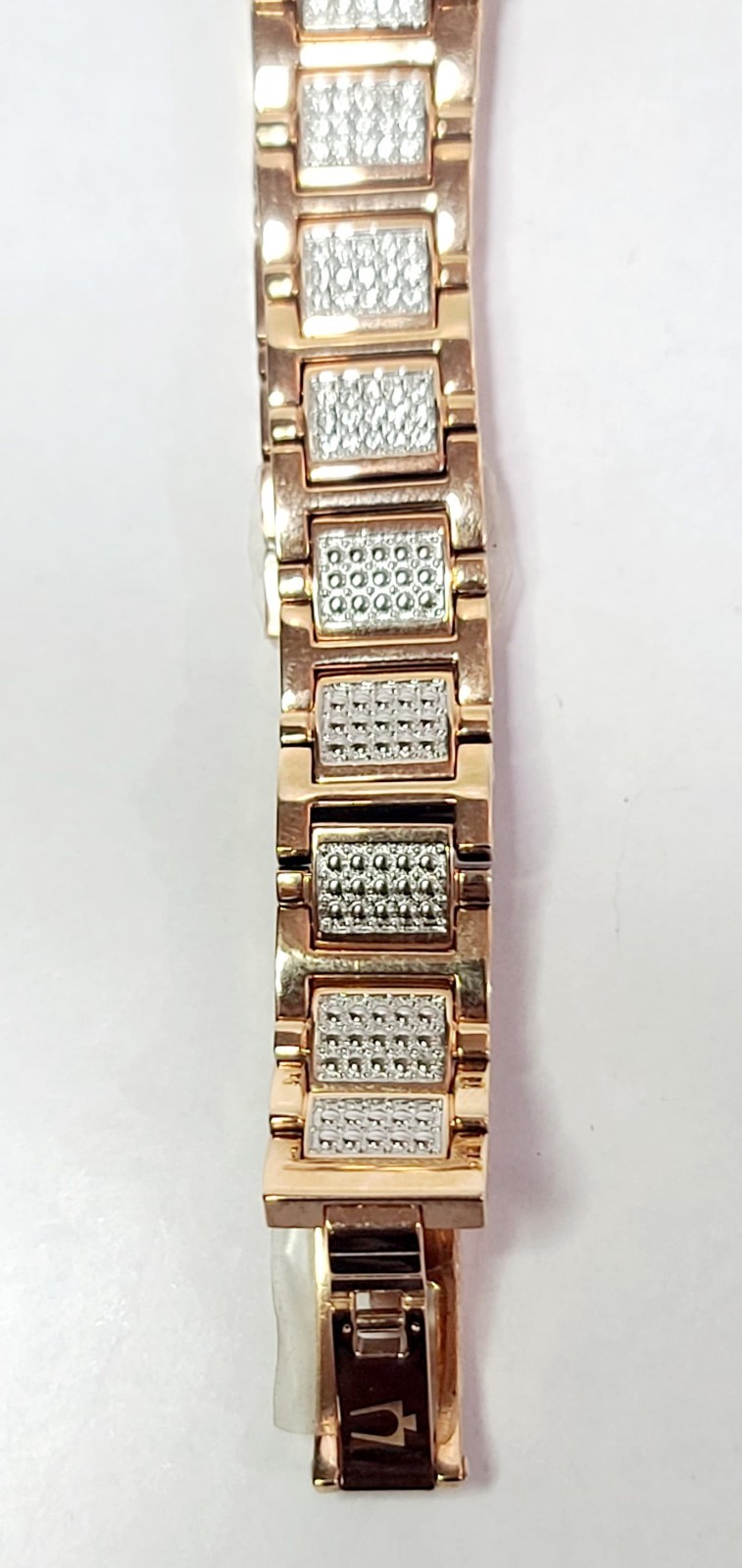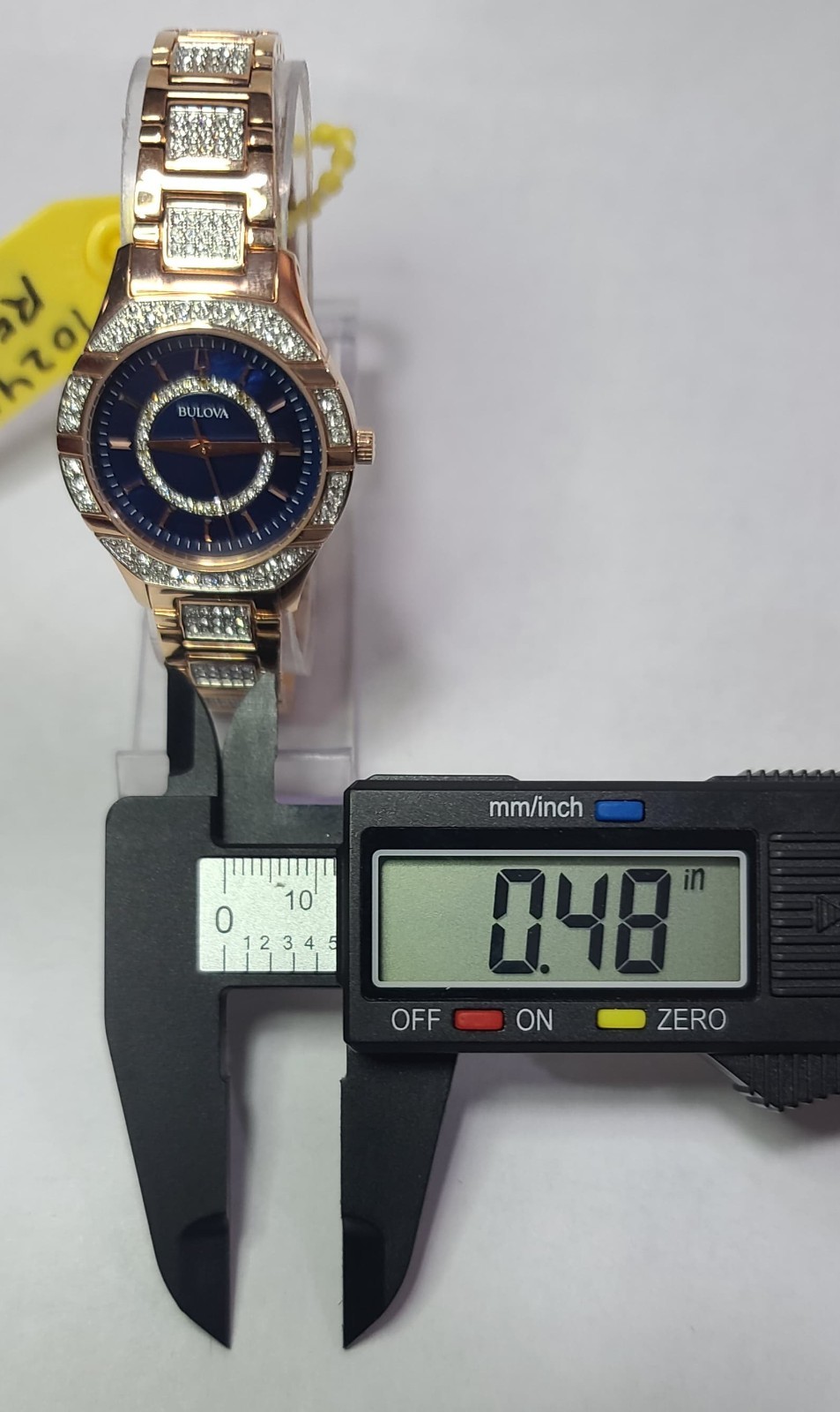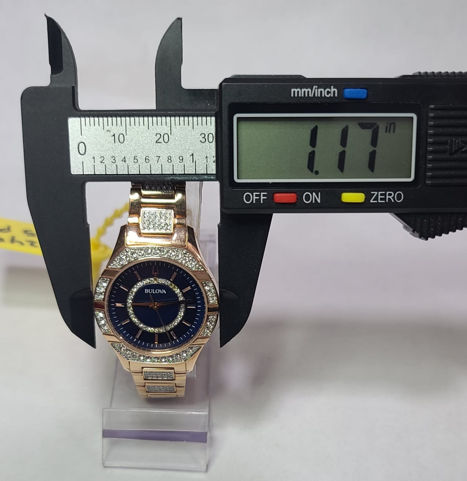 BULOVA BLUE DIAL DIAMOND ACCENT ROSE GOLD WATCH FOR WOMEN'S MB-659