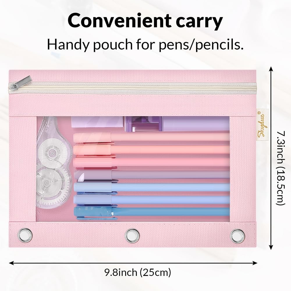 SKYDUE 3 Ring Pencil Pouch Case for Binder, Zipper Pencil Pouches for Girls
