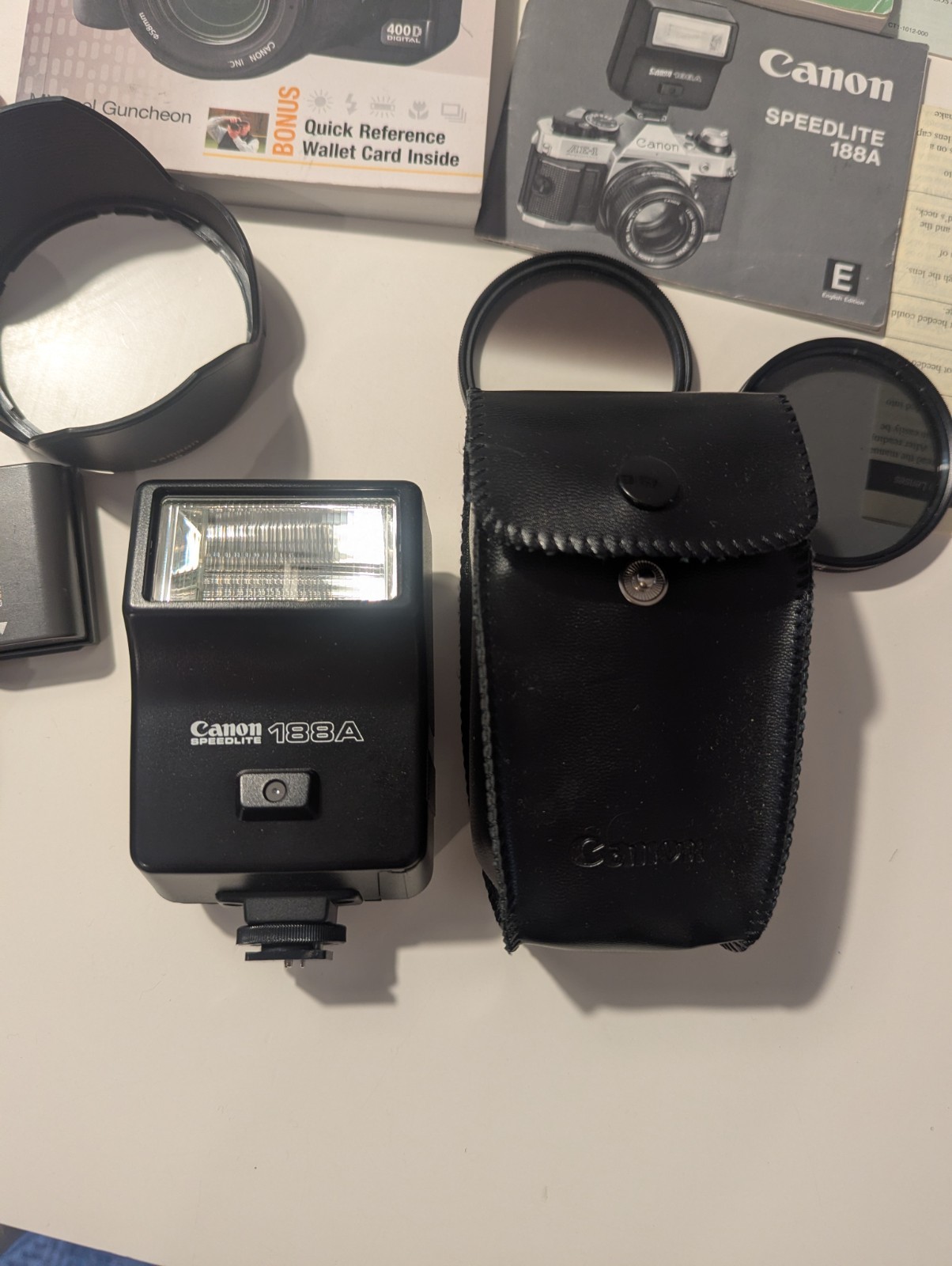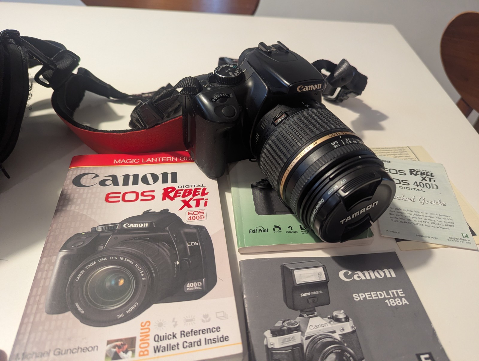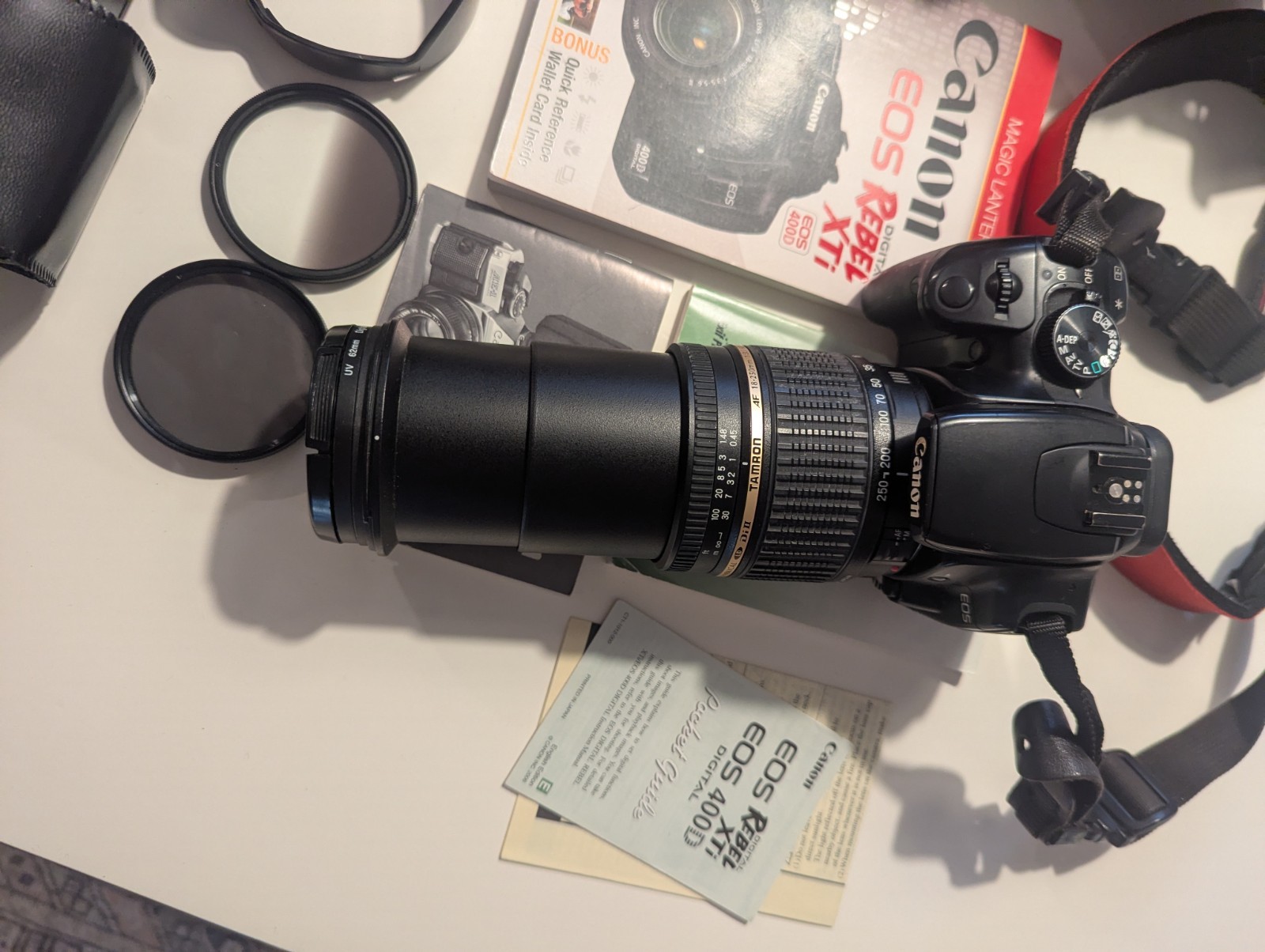 CANON EOS REBEL XTi CAMERA w TAMRON 18-250mm Macro Lens, Speedlight 188A, Bag