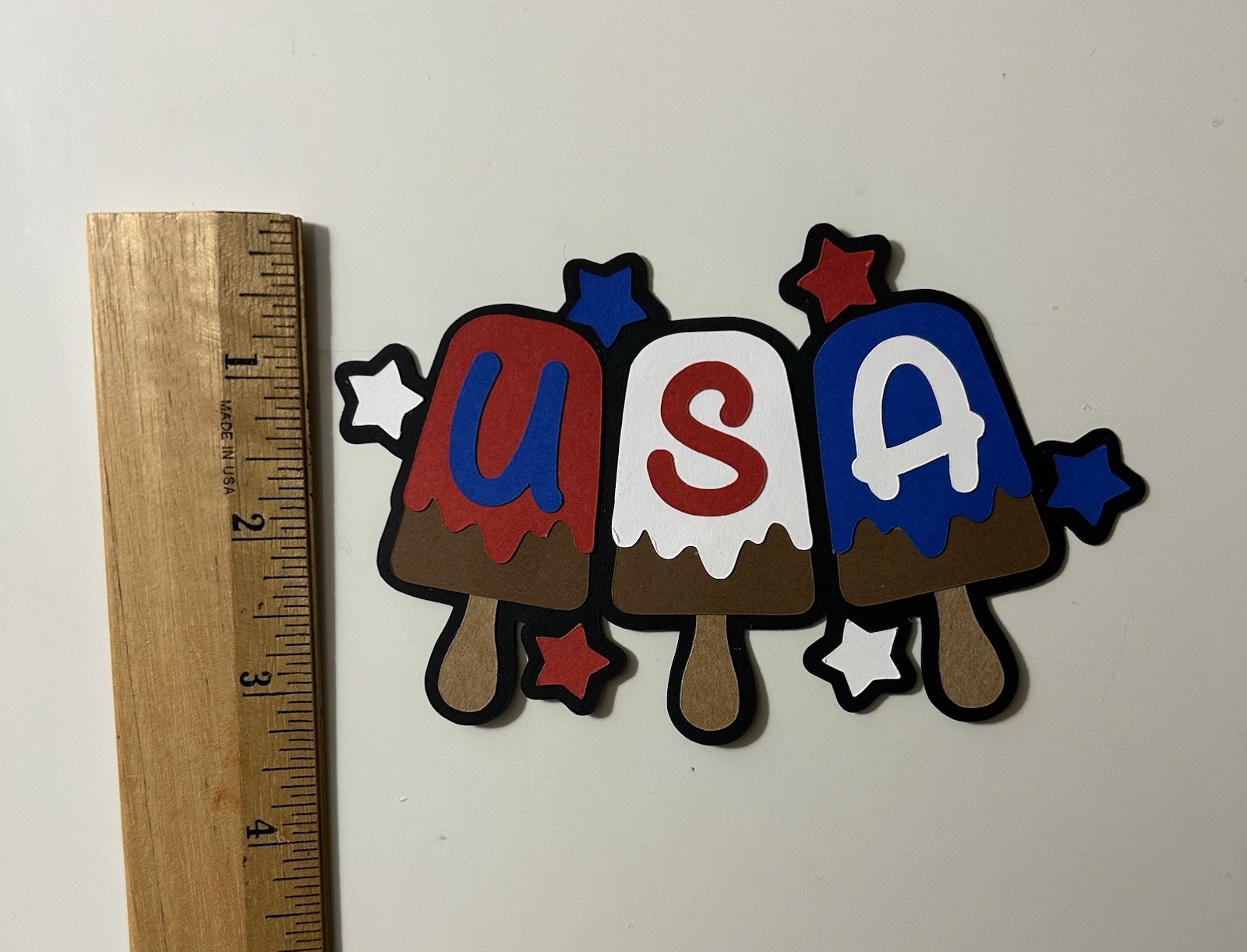 как выглядит July Fourth USA Scrapbook Title Handmade Die Cut Paper Pierced фото