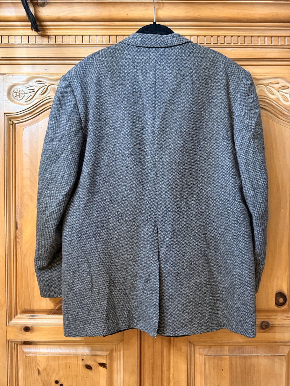 Lands End 42R Gray Herringbone Merino Lambswool Tweed Blazer Jacket Sport Coat