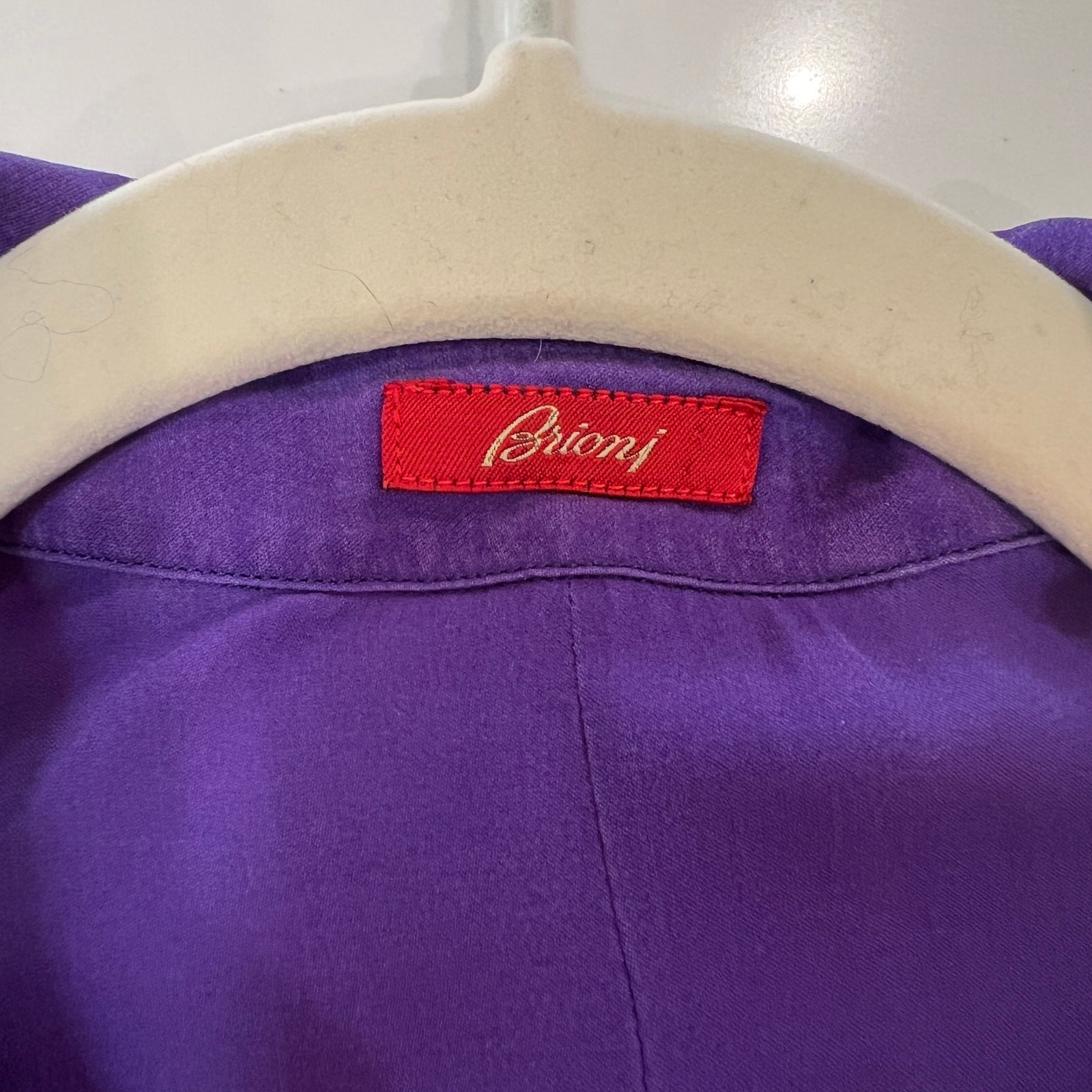 Brioni 100 silk purple button down shirt Italy small 42 long sleeve