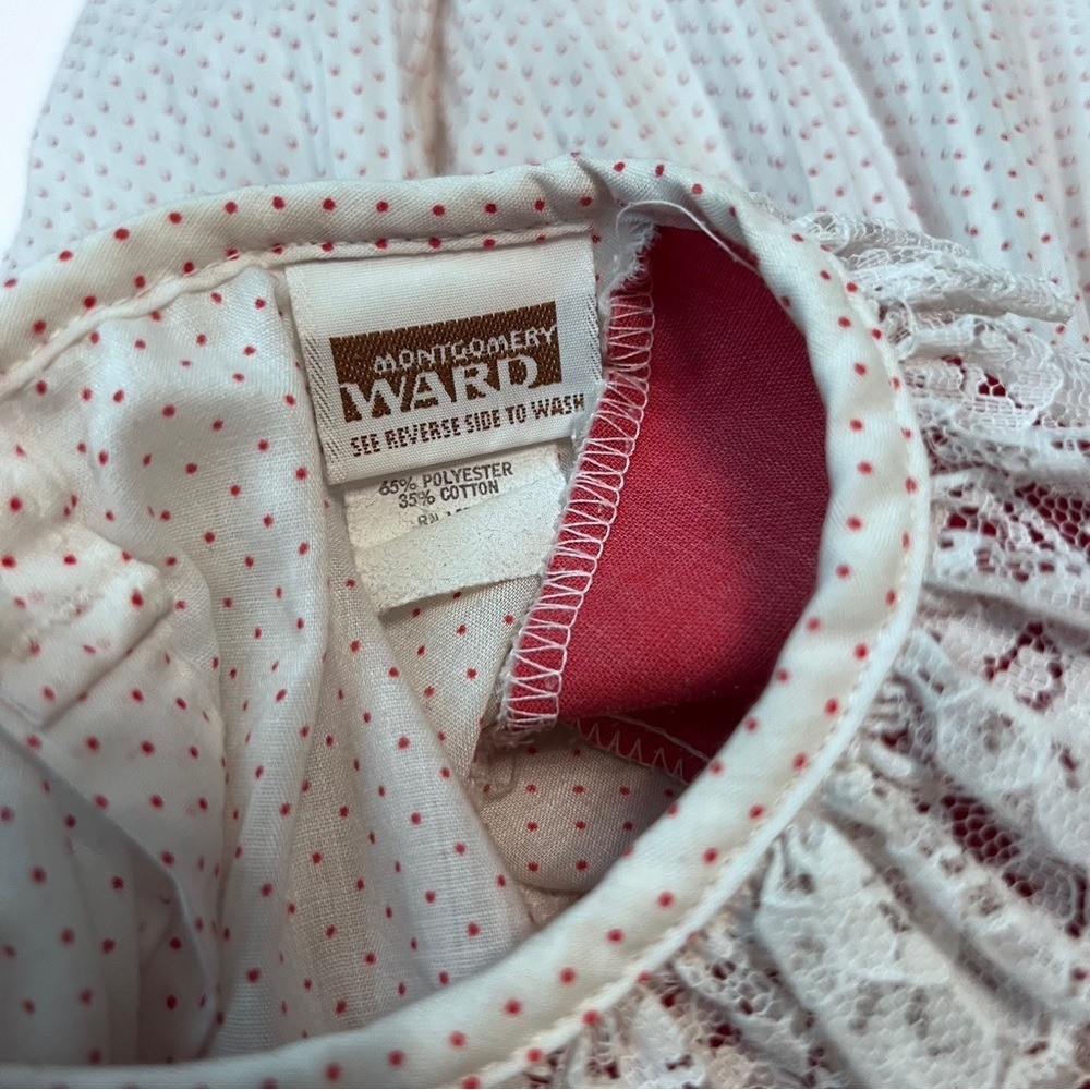 Vintage Montgomery Ward 70s Red Velvet Lace Nightgown Dress 3 USA