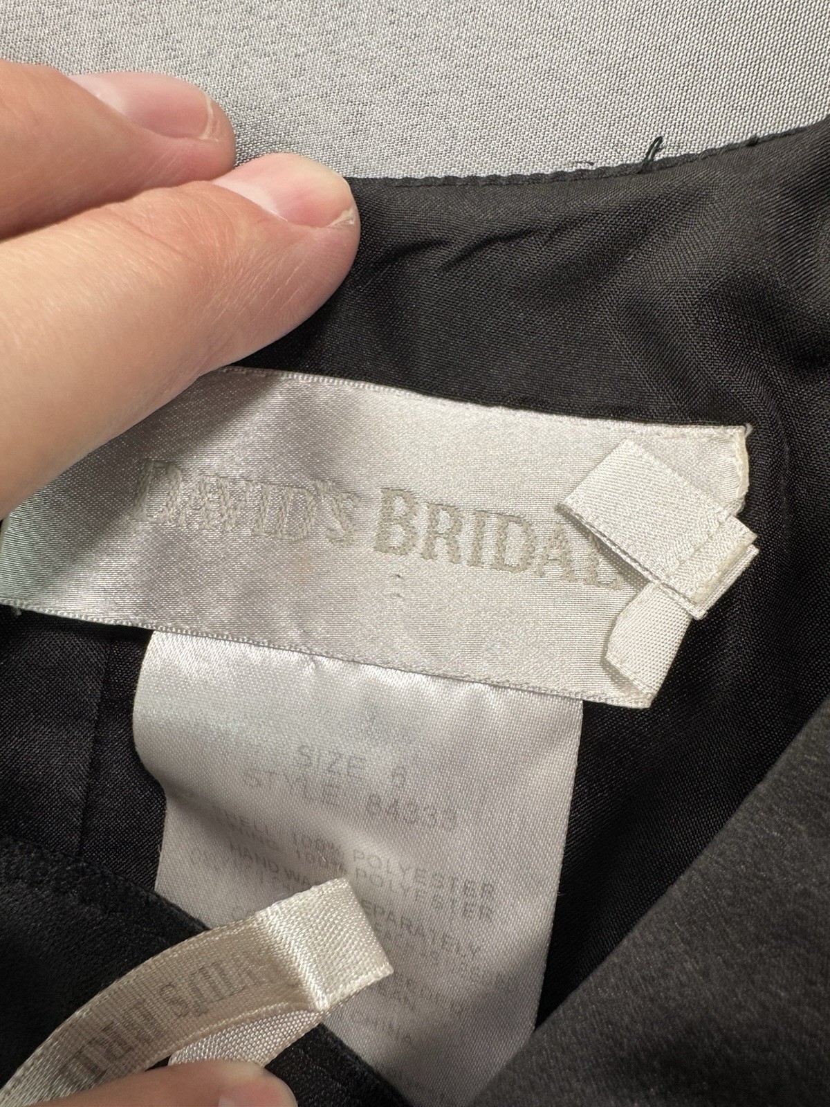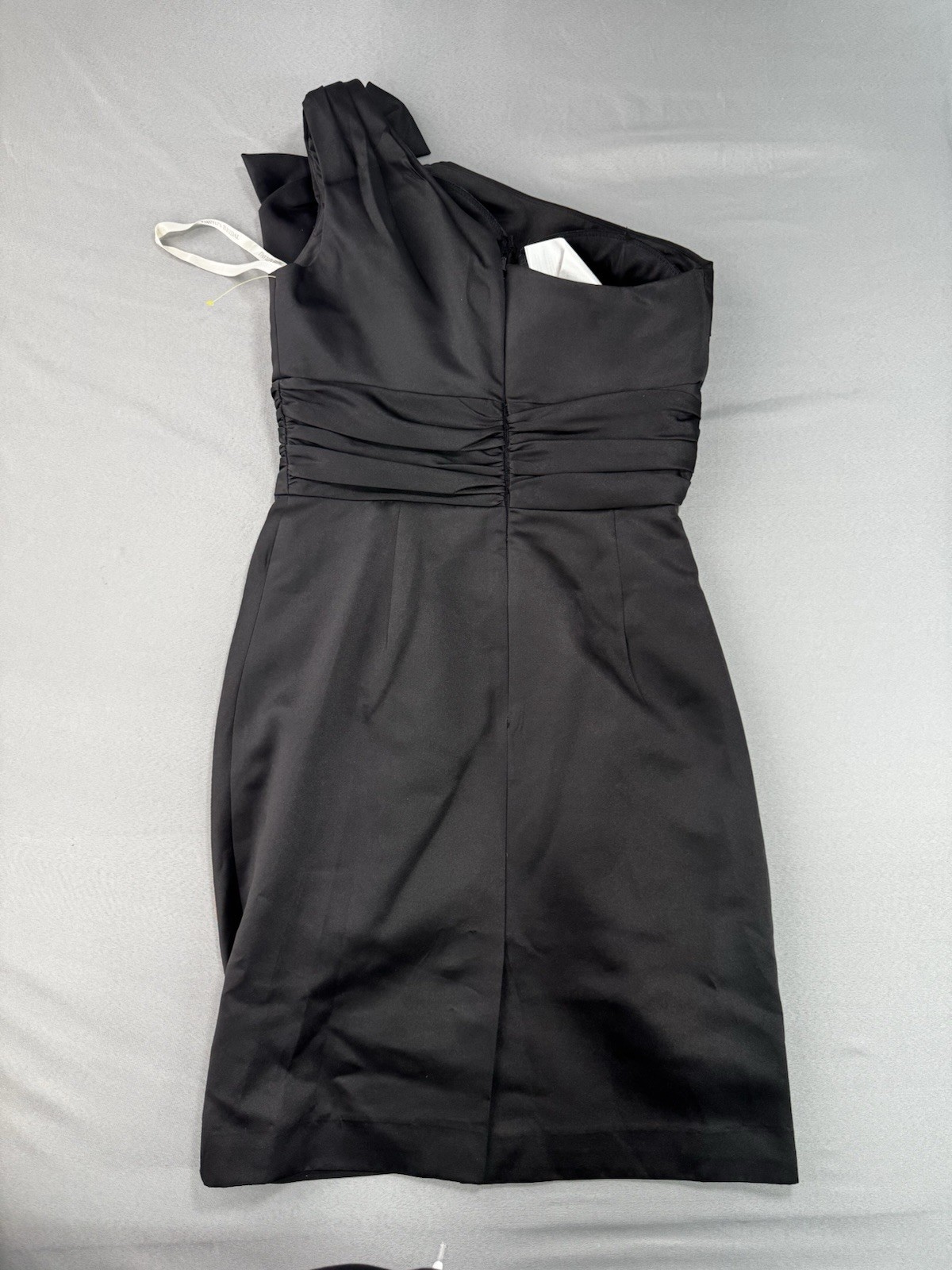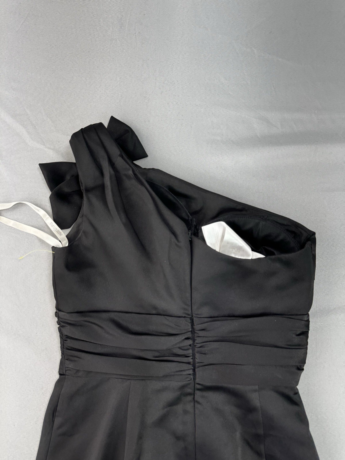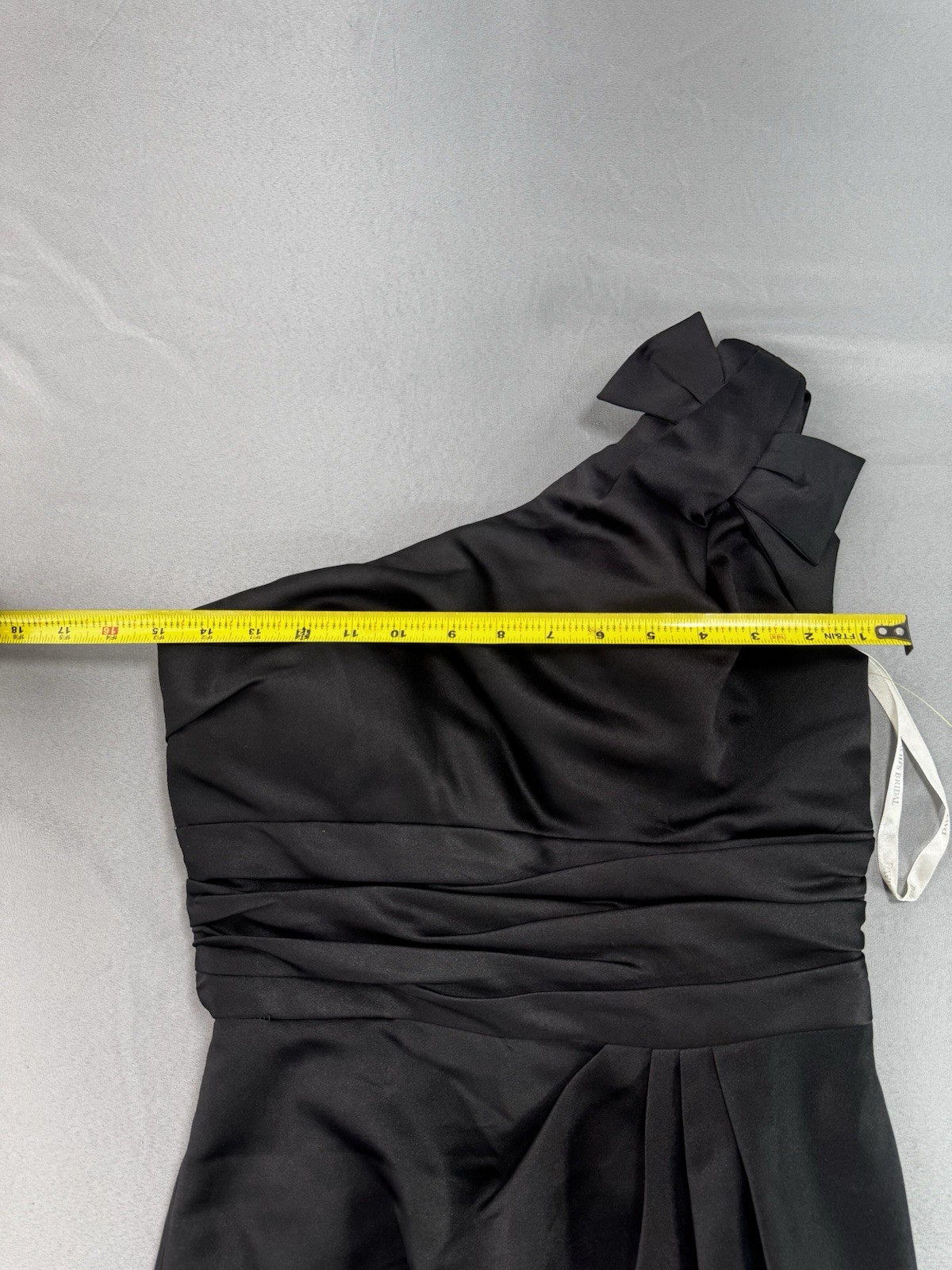 Davids Bridal Size 6 Black Satin One Shoulder Dress Lined Zips Wedding Formal