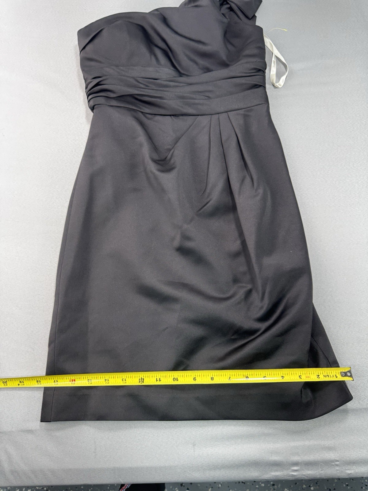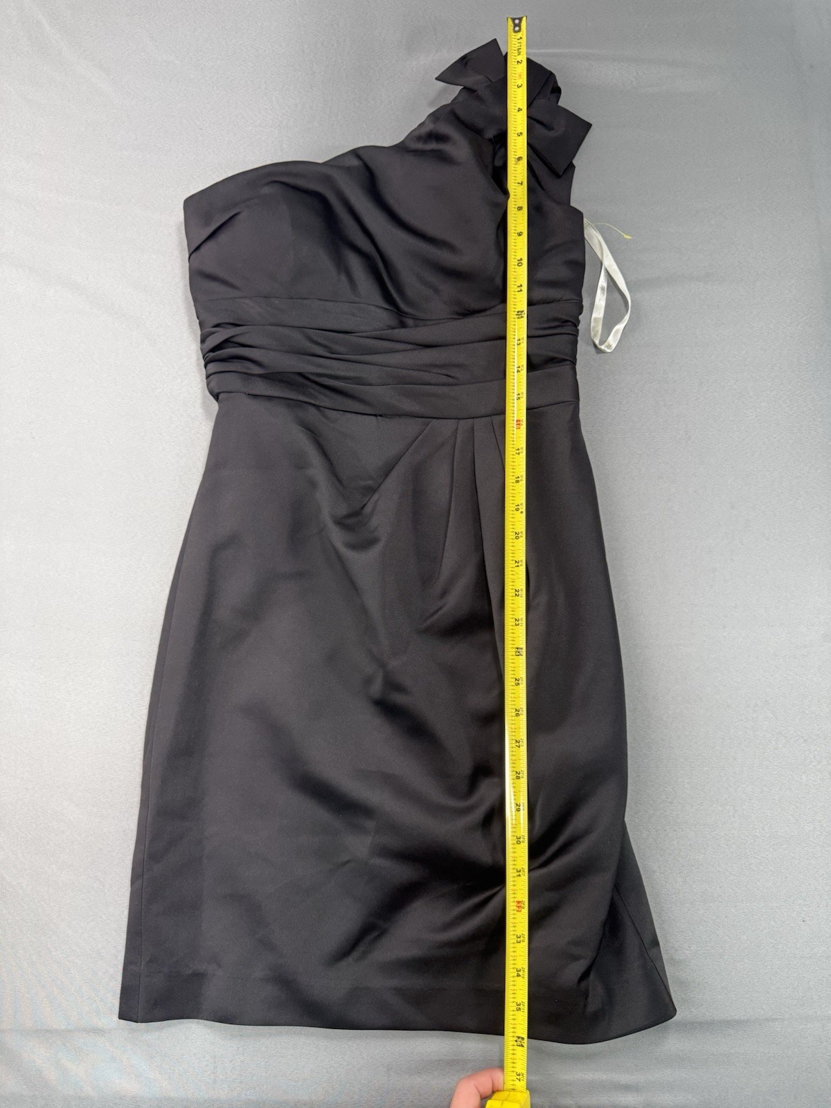 как выглядит Davids Bridal Size 6 Black Satin One Shoulder Dress Lined Zips Wedding Formal фото
