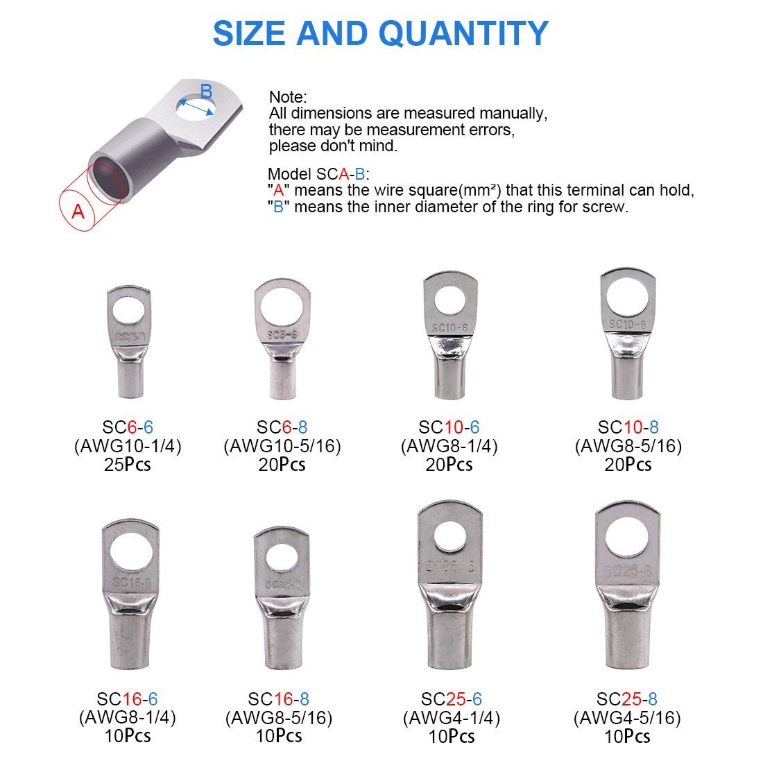 125Pcs Marine Grade Heavy Duty Tinned Copper Wire Lugs Battery Cable Ends Eyelet