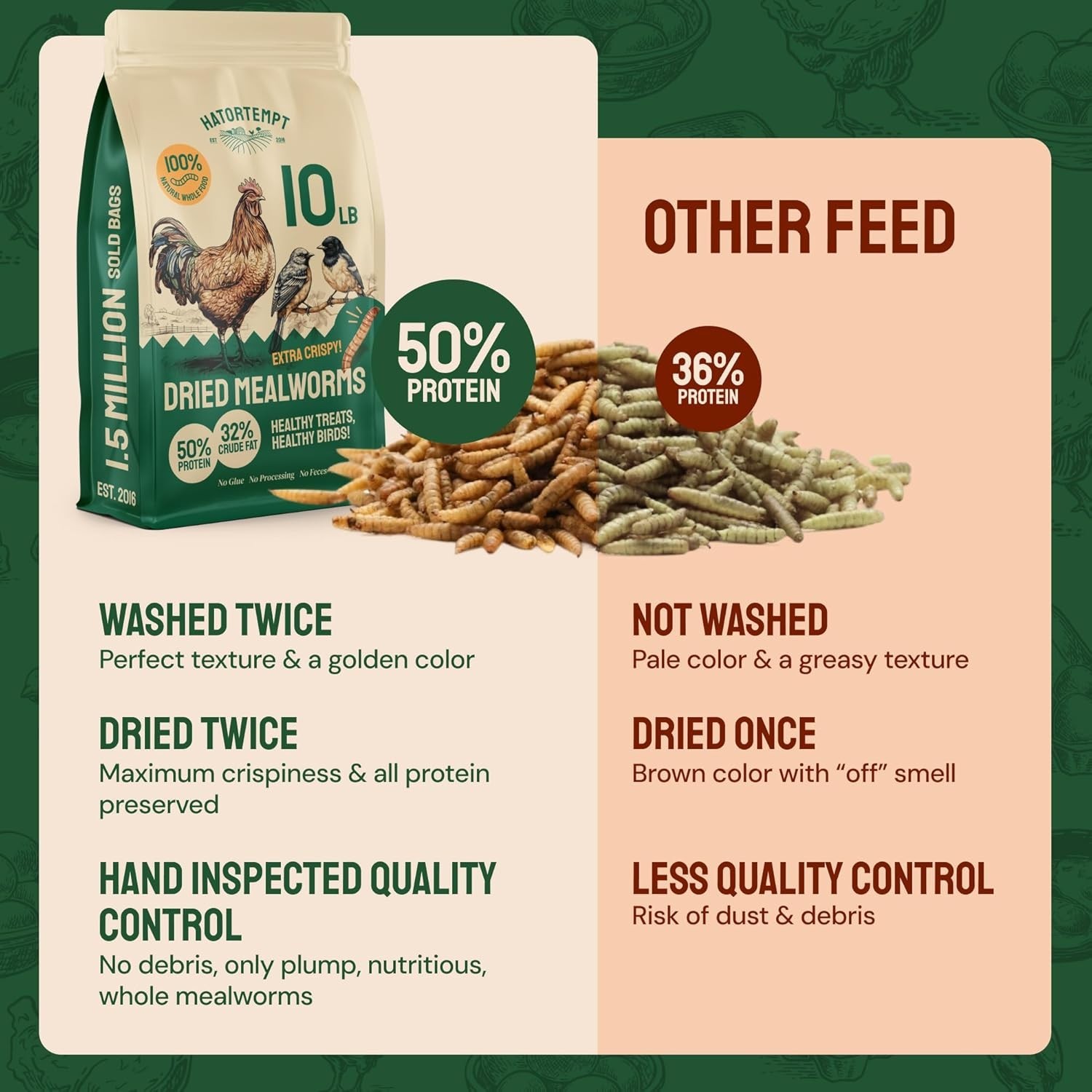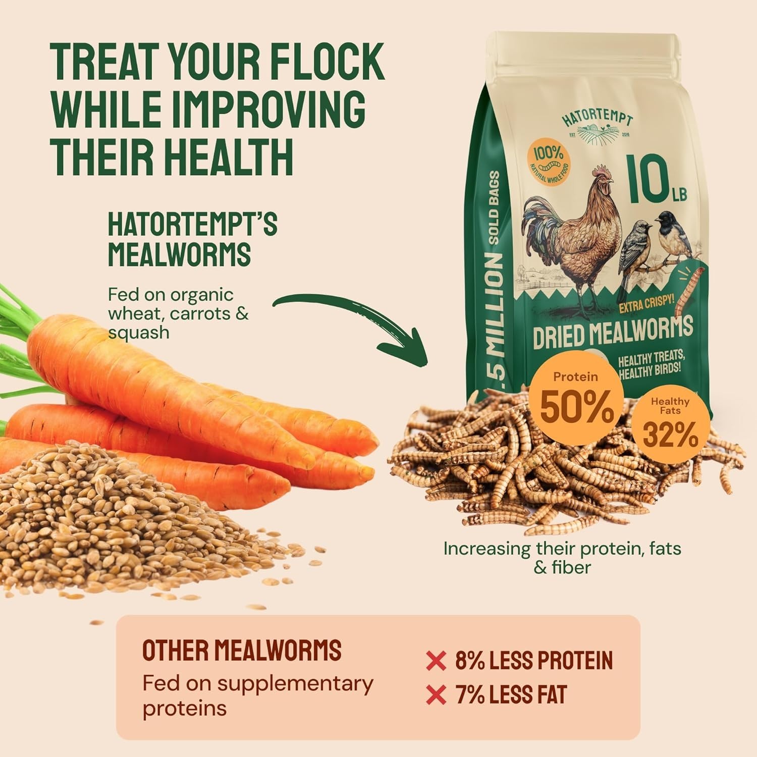 Bulk Dried Mealworms - 10 Lb Bag - Non-GMO Dried Mealworms for Chickens, Duck...