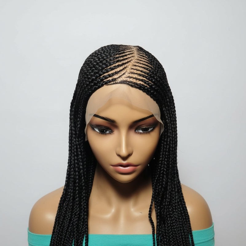 Black Braided Wig. Cornrow with Individual Box Braids. Full Lace With Baby Hair