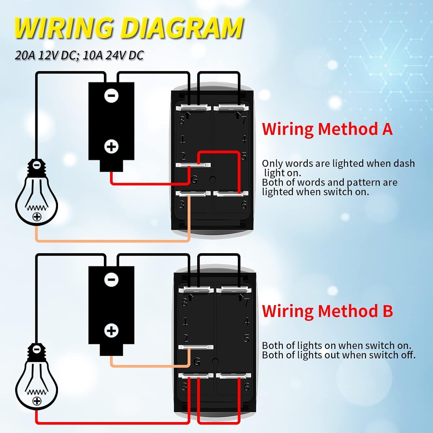 Rocker Light Switch 12V LED Light Bar Rock Light Switch SPST ON Off 5 Pin RZR Ro