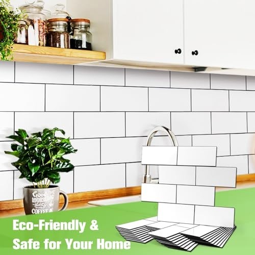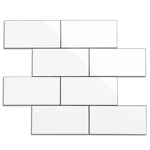 Peel and Stick Backsplash Tile for Kitchen Bathroom Walls - White, 10 Tiles, 9