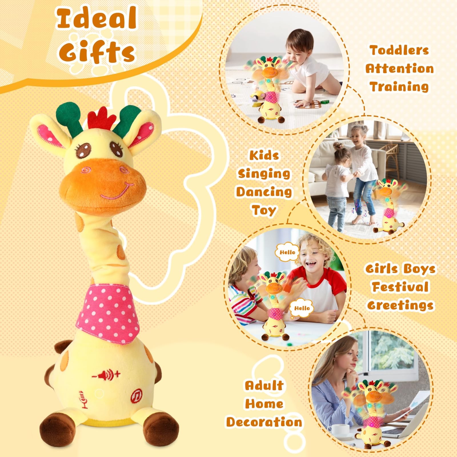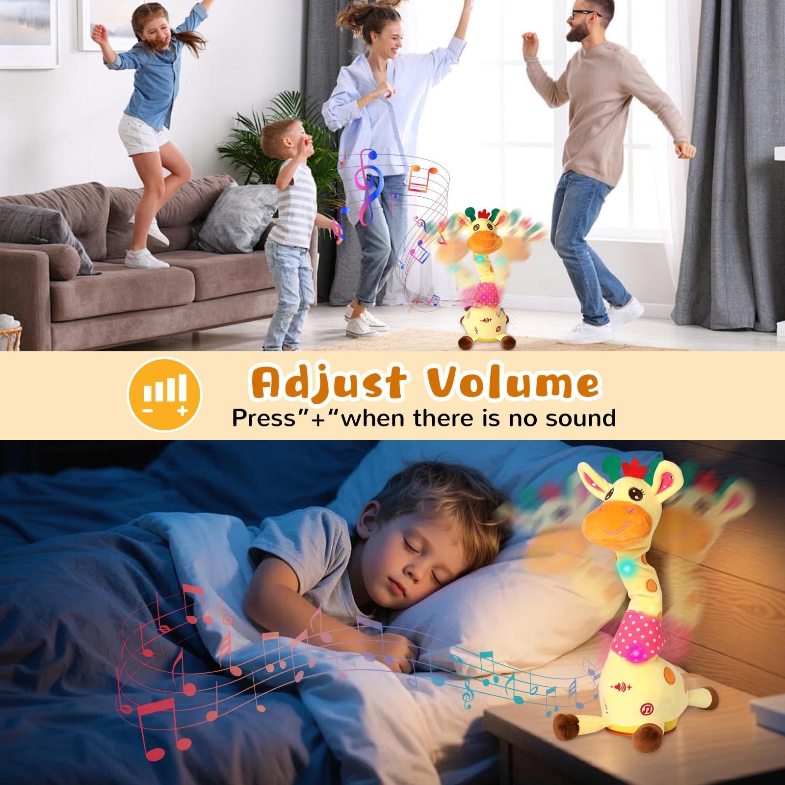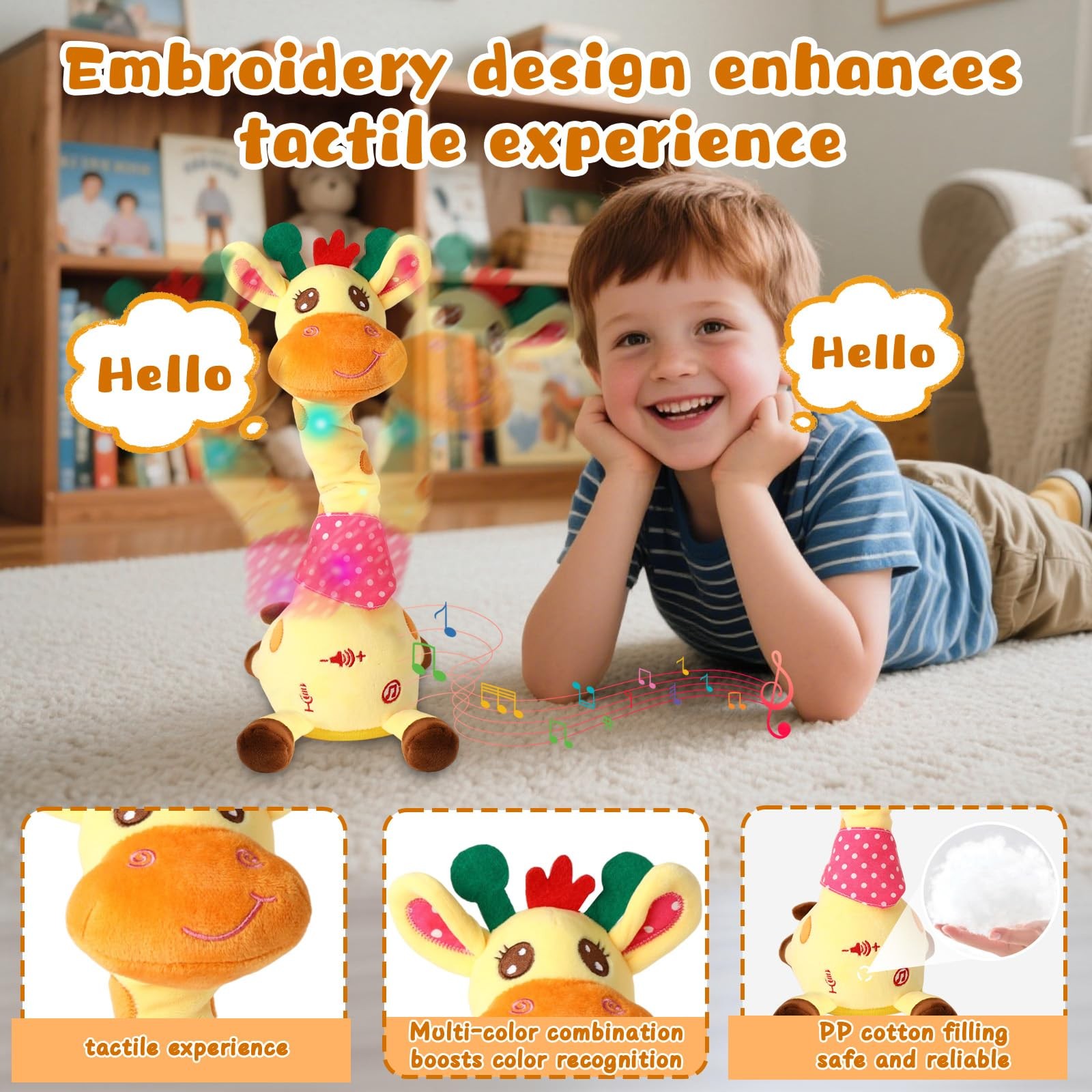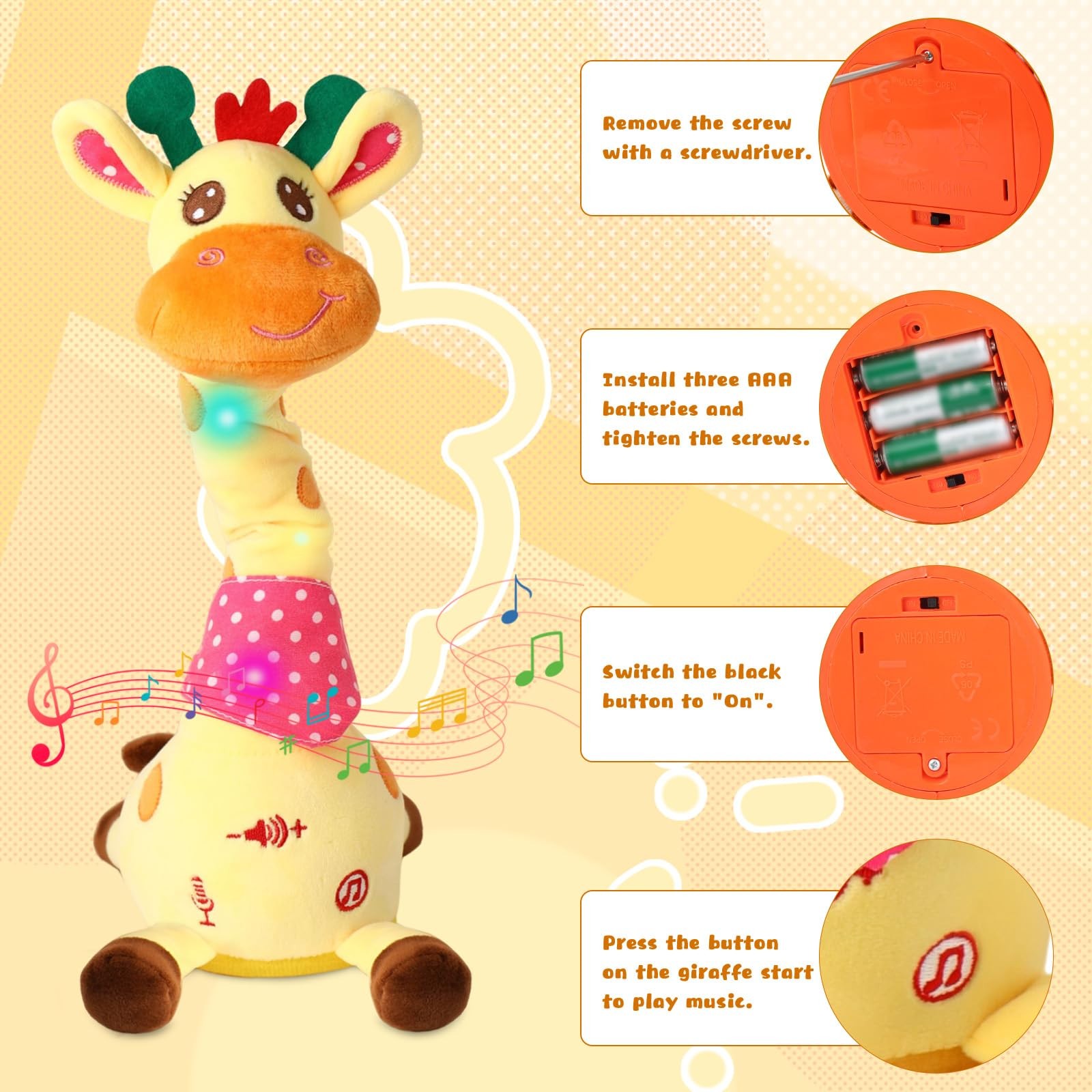 Christmas Talking Dancing Giraffe Baby Toy, Adjustable Volume Tummy Time Toy ...