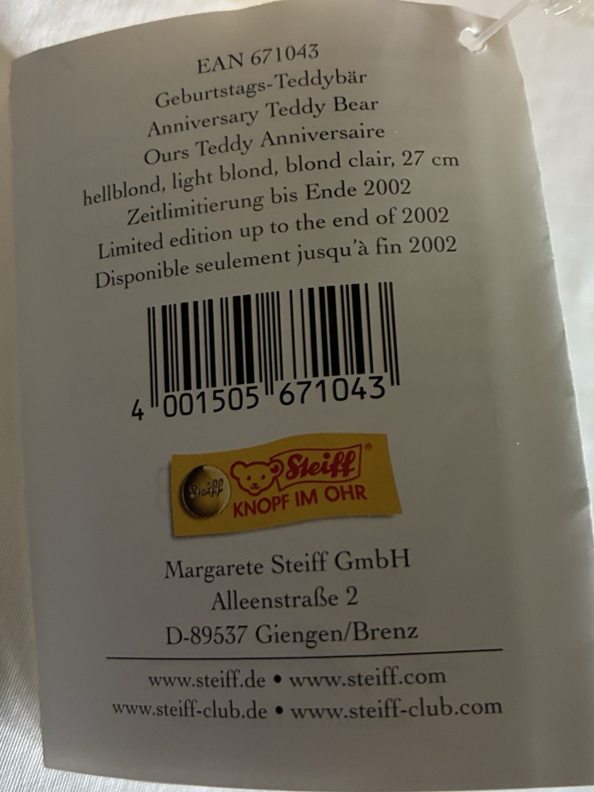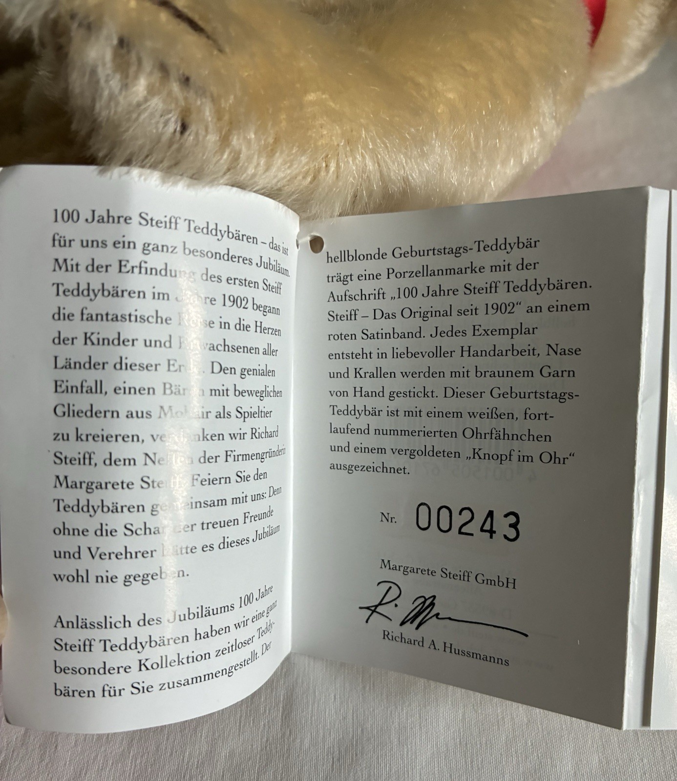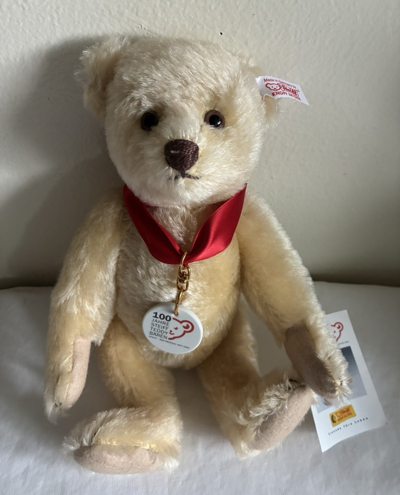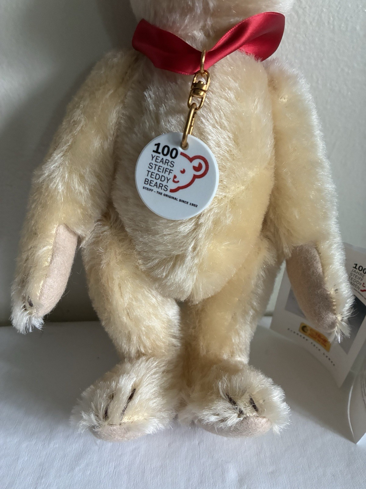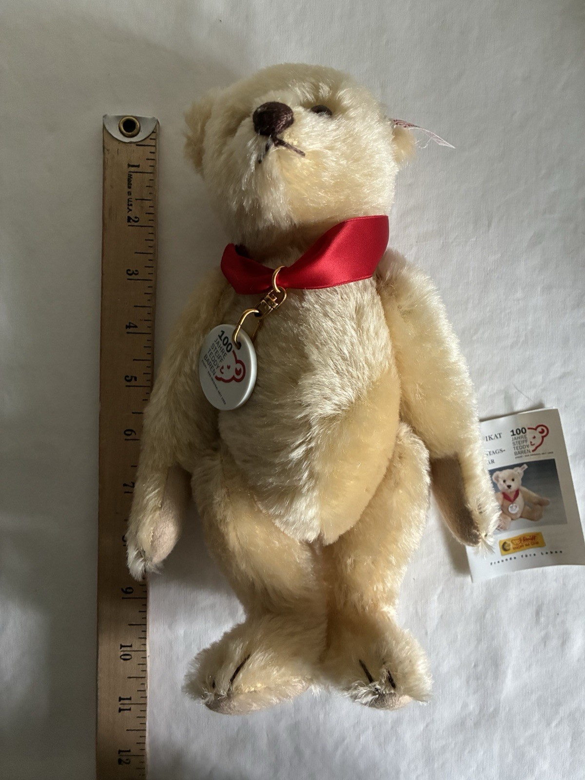 Steiff 100 Year Anniversary Teddy Bear 10 Blond Mohair 2002 Germany 671043 Tags