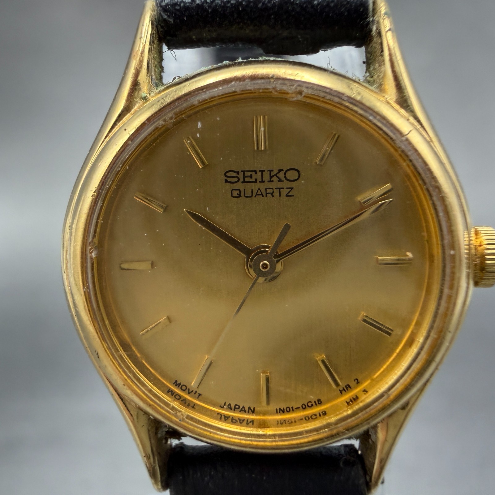 Seiko Watch Women 20mm Gold Dial Gold Tone Round 1N01-0E19 New Battery Vintage 3