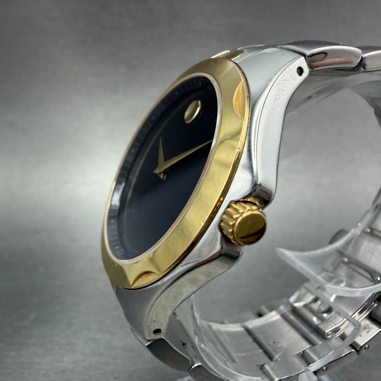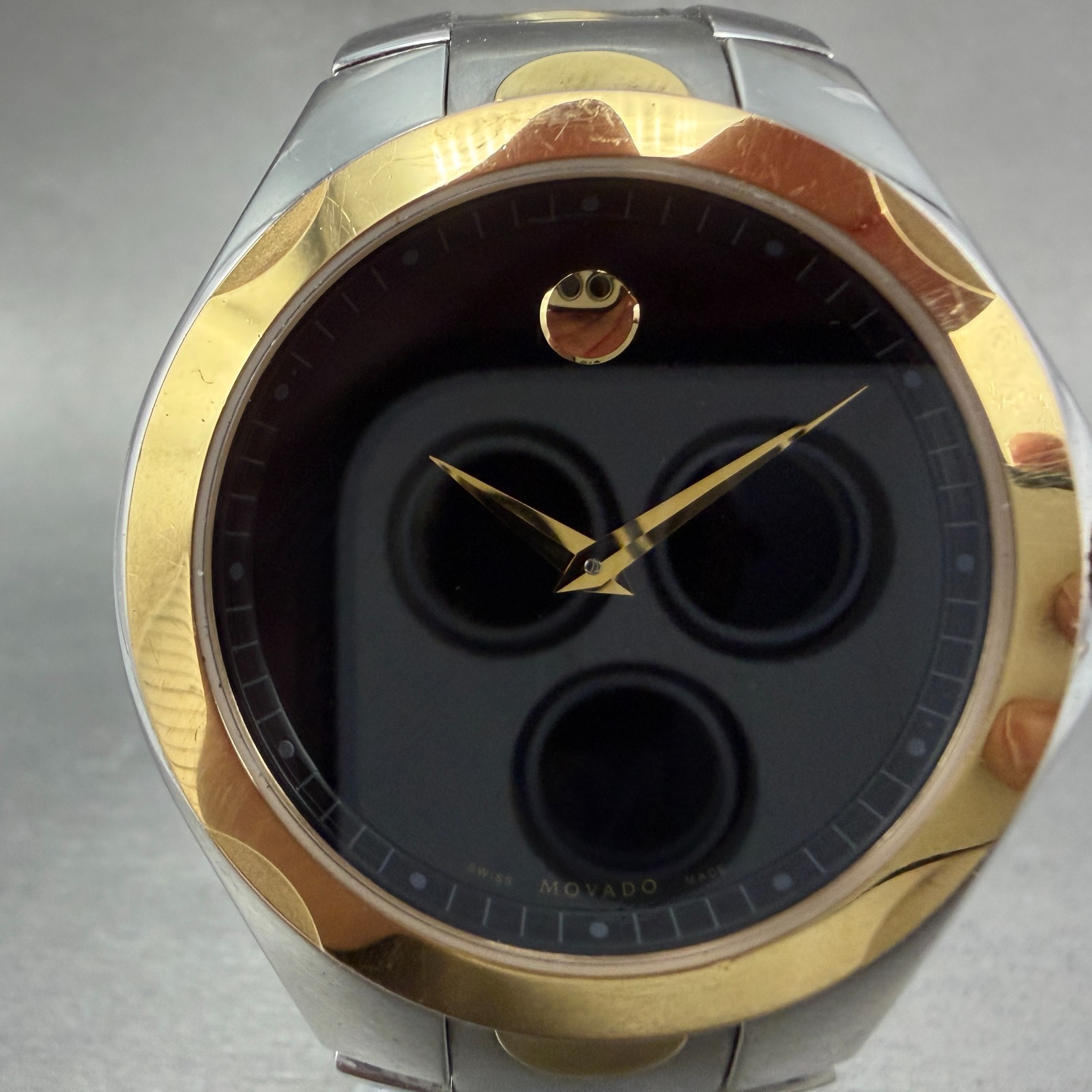 Movado Luno Watch Men 40mm Black Dial Two Tone Steel Round 0605635 New Battery