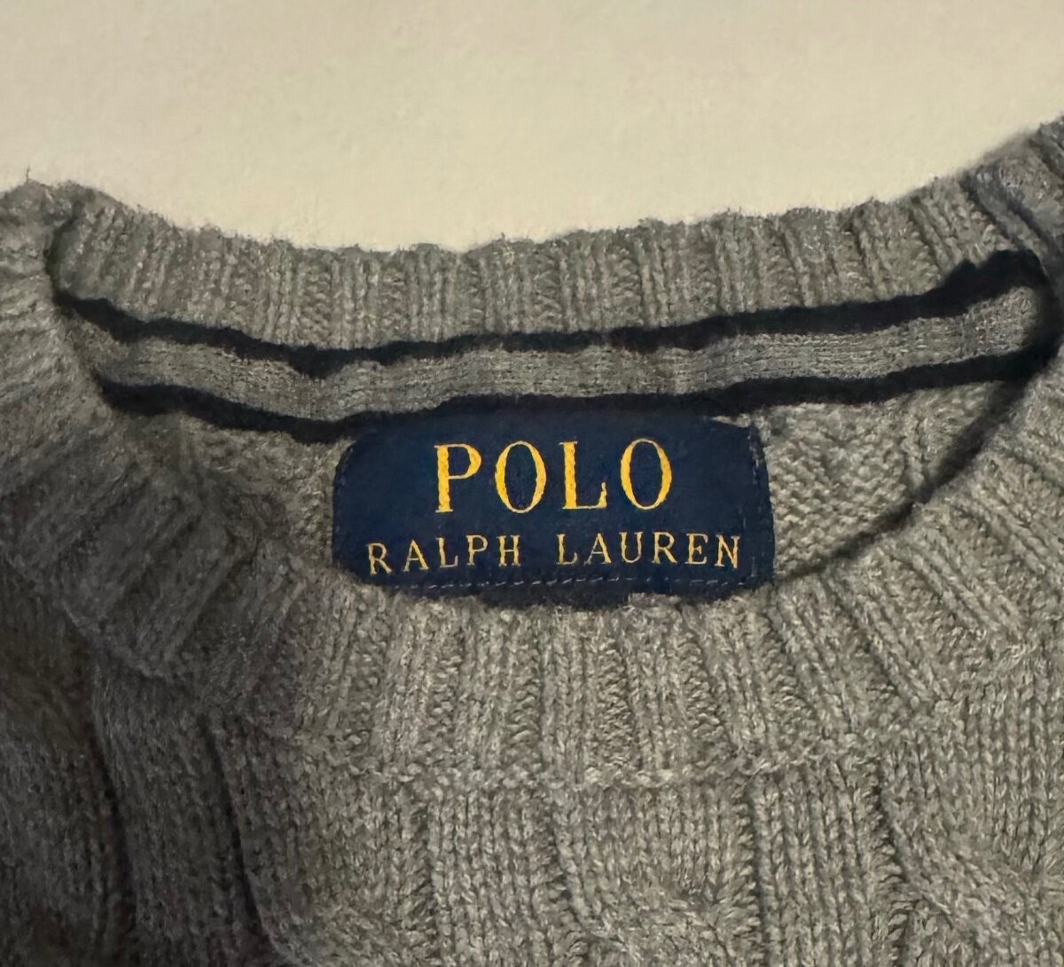 как выглядит POLO Ralph Lauren Gray Cable Knit Sweater Kids Small 8 P Embroidered Pony фото