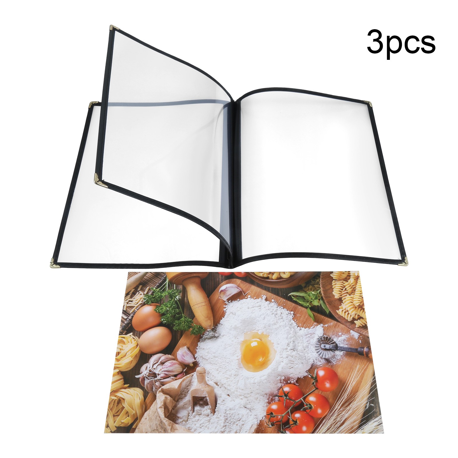 1Pcs Durable Flexible PVC Menu Cover 3 Pages 6 Sides for Hotel and Pub Cafes