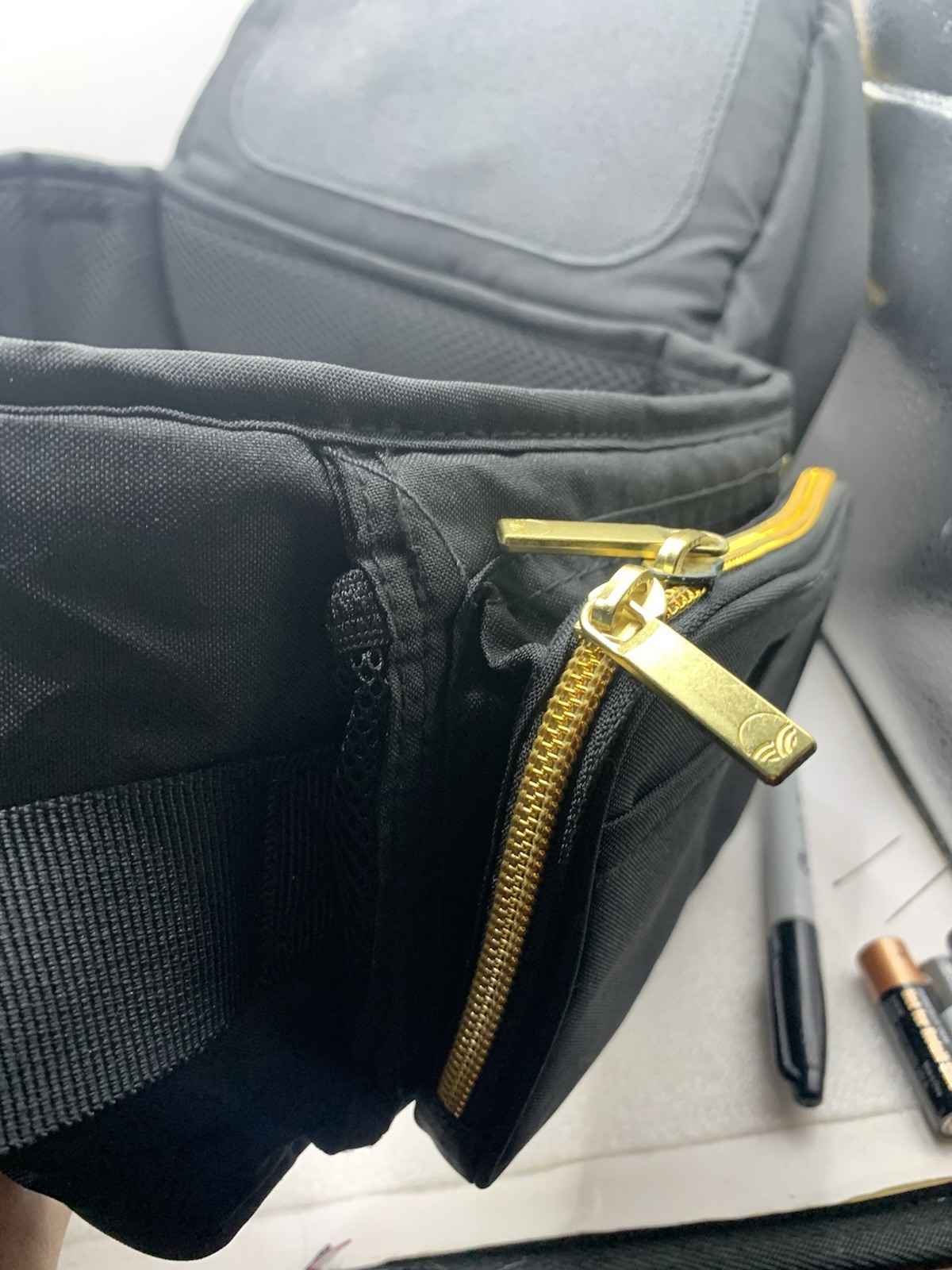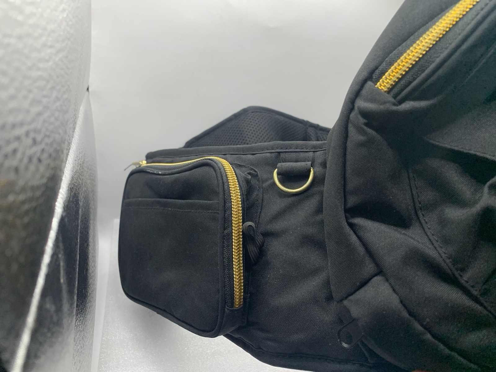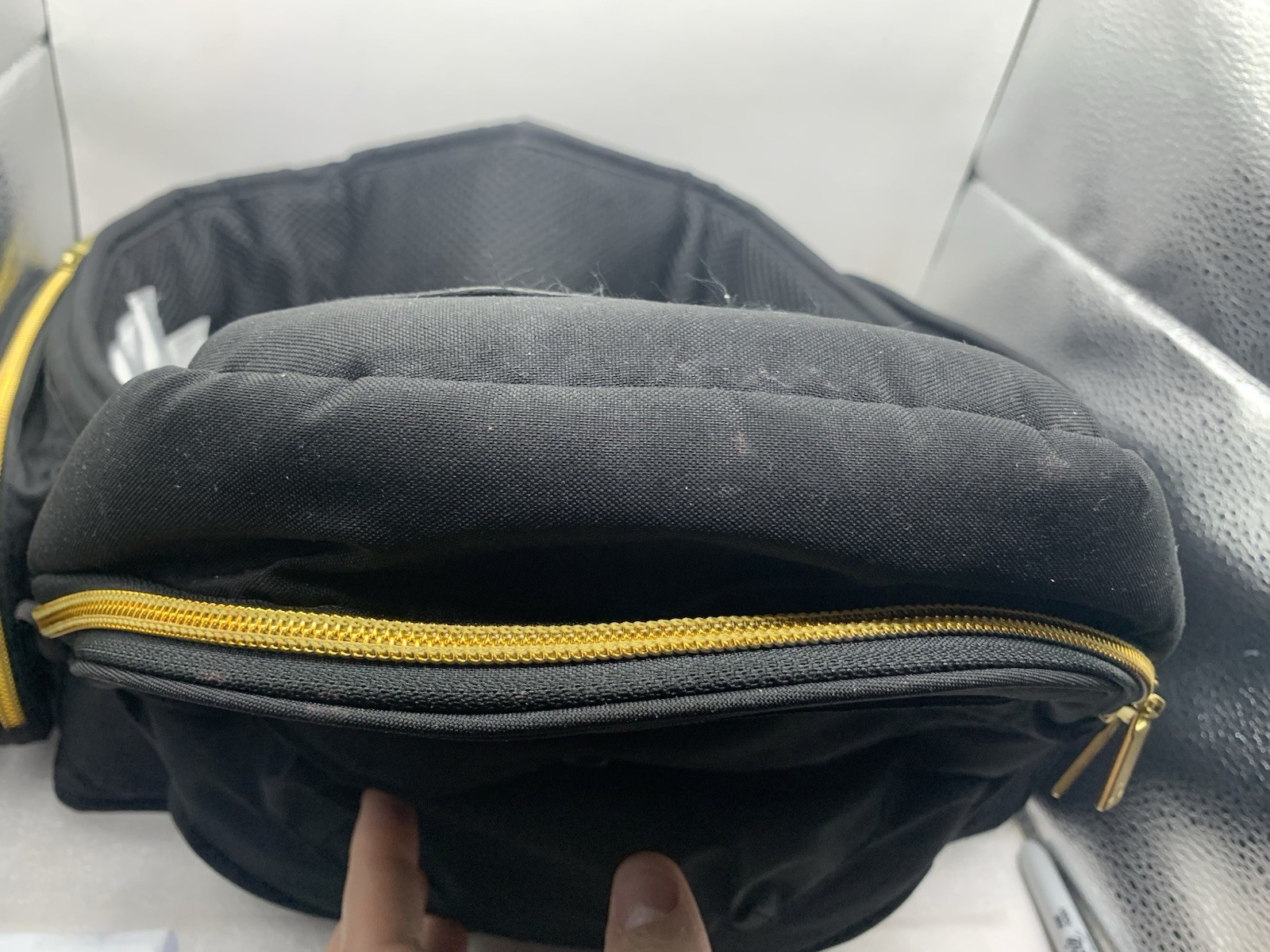TushBaby Hip Seat Baby Carrier Adjustable Locking Belt Black/Gold Zippers BC