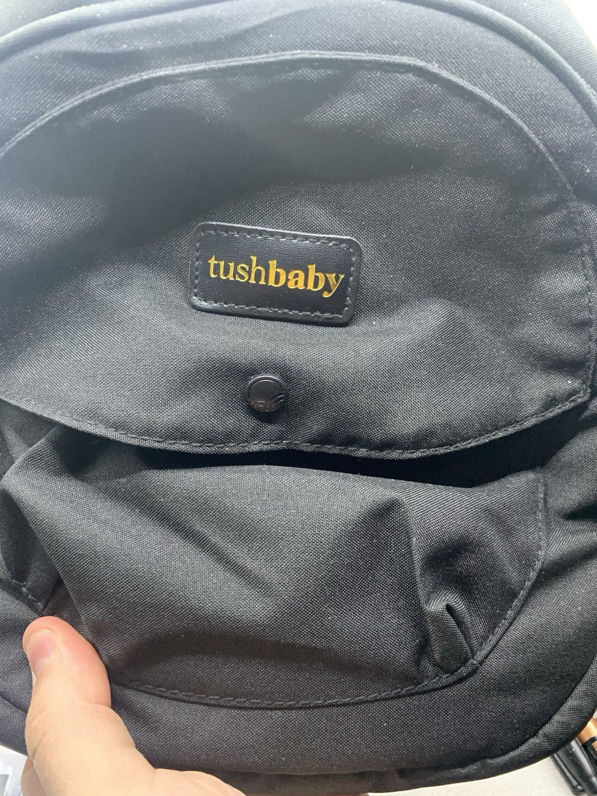 как выглядит TushBaby Hip Seat Baby Carrier Adjustable Locking Belt Black/Gold Zippers BC фото