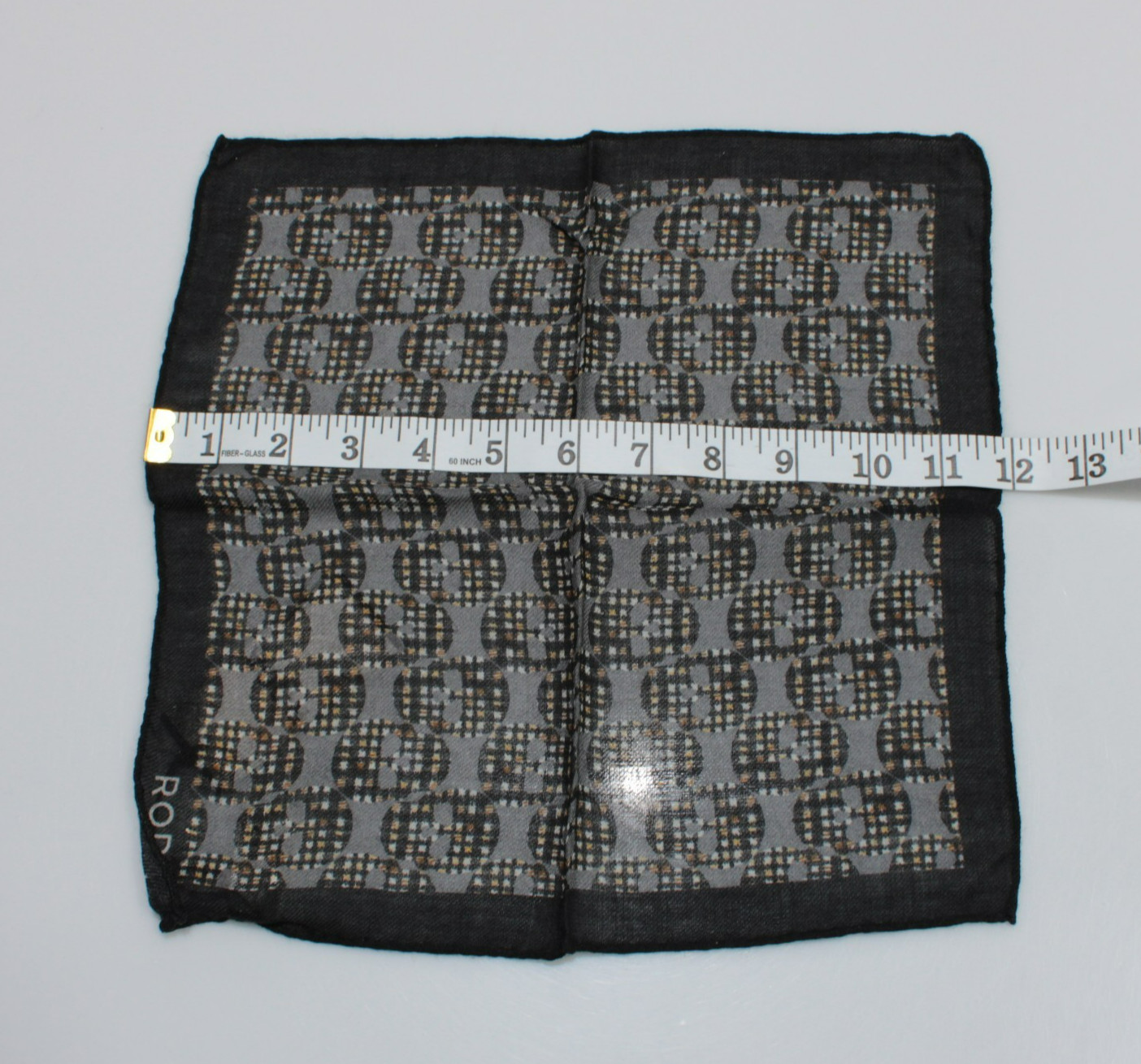 Roda NWT Wool Pocket Square In Gray, Black Tan Geometric