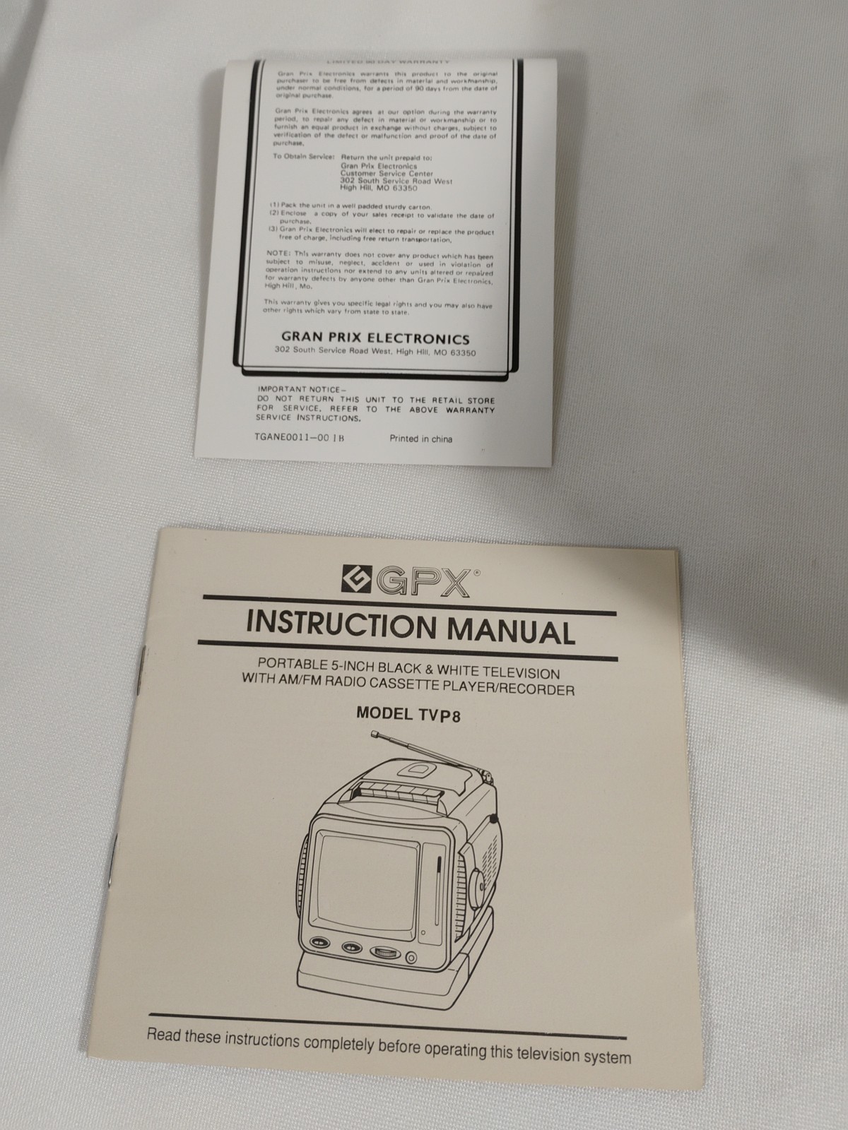 Vintage GPX TVP8 B W Portable Television AM-FM Radio Cassette Recorder W Box