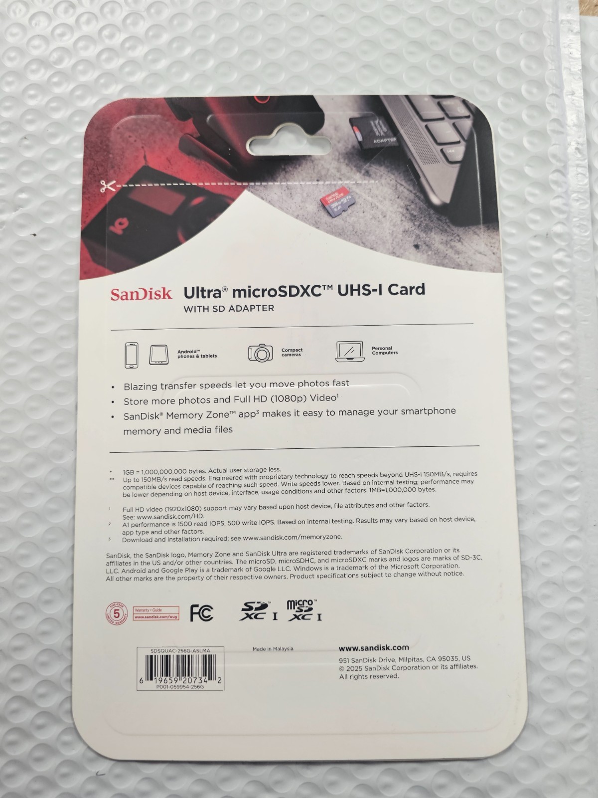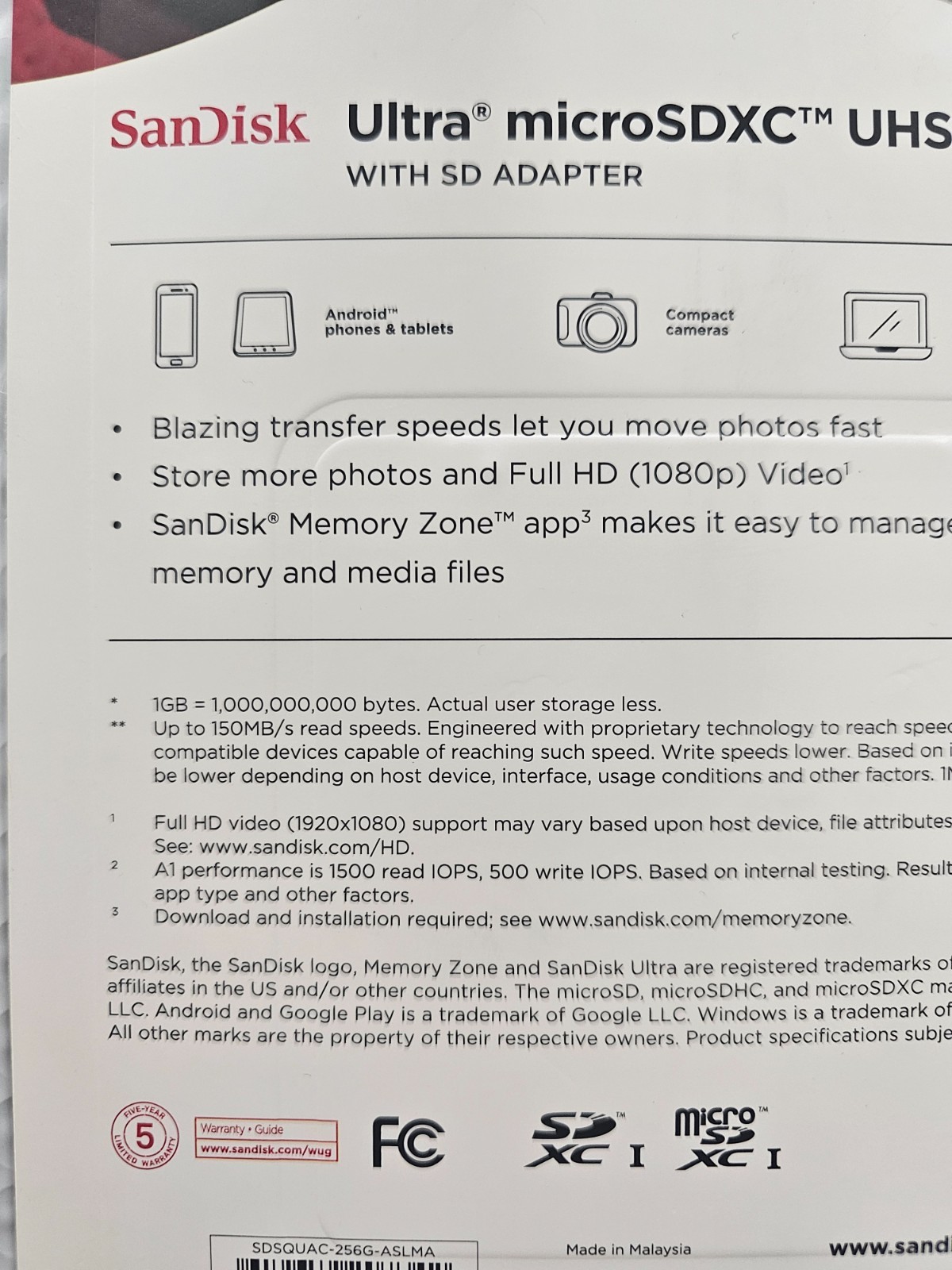 как выглядит SanDisk Ultra microSDXC UHS-I Card W/Adapter 256GB Up To 150MB/s NEW фото