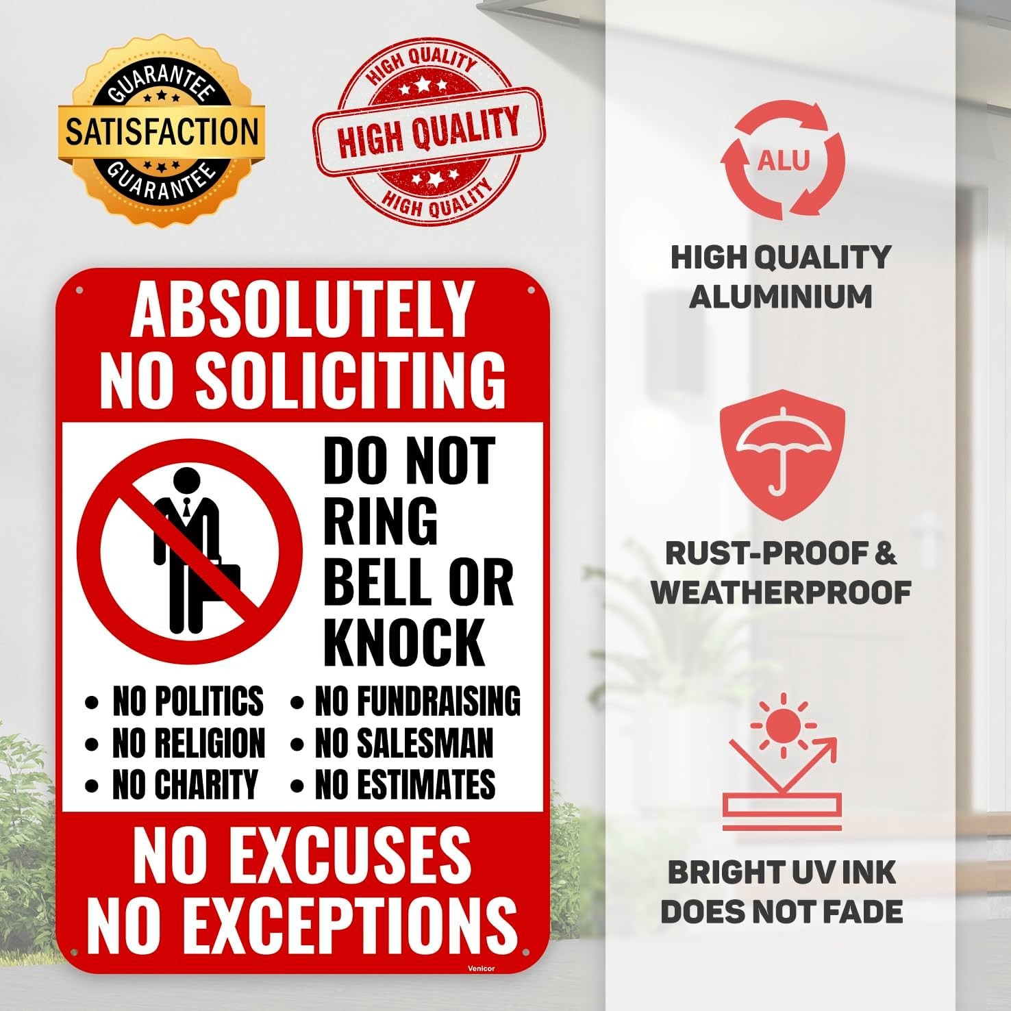 1PC No Soliciting Sign for Home, 10 x 7 Inches - Aluminum - Do Not Knock Please