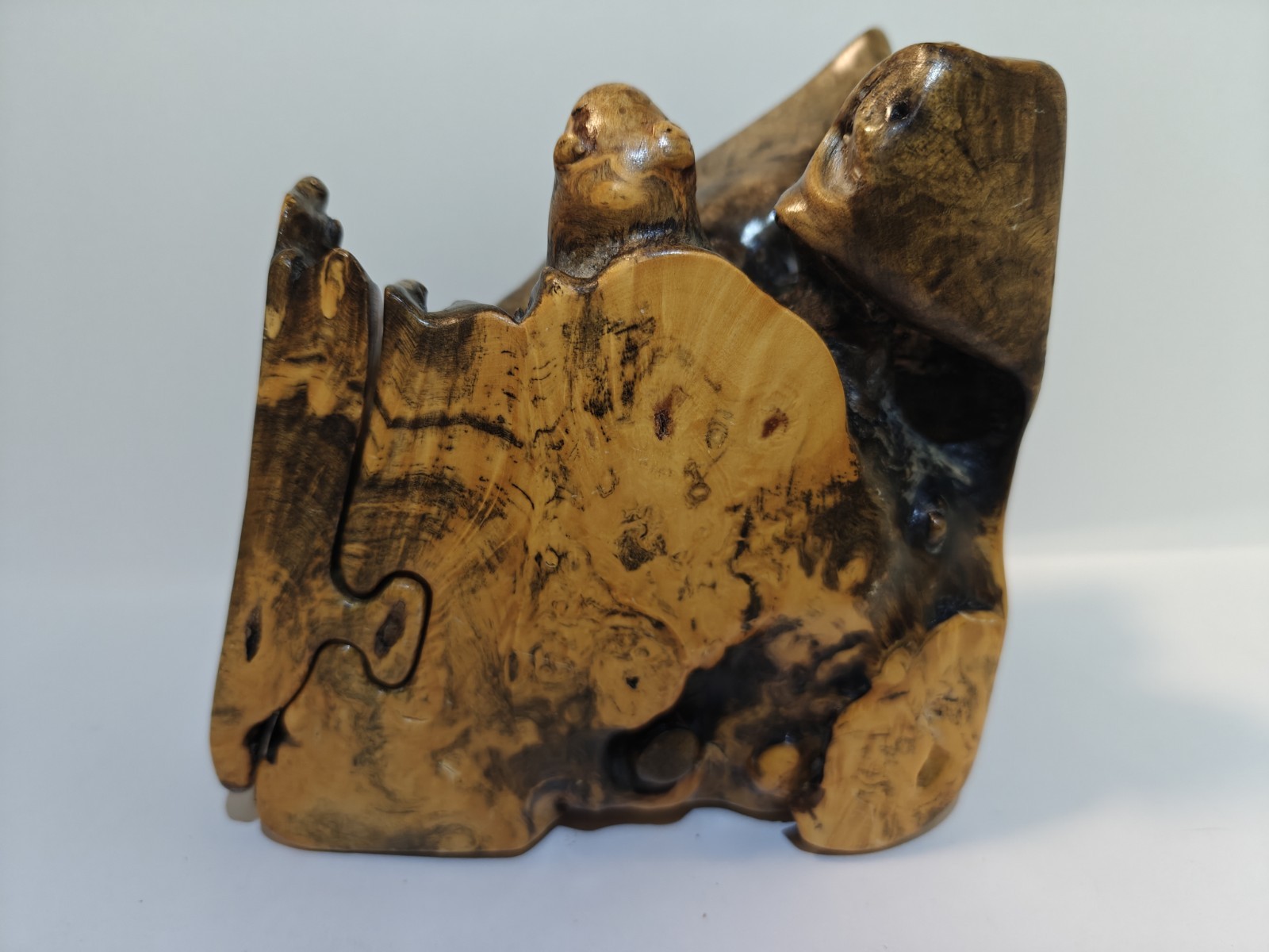 как выглядит Vintage 2006 Signed Don Wood Burl Wood Puzzle Trinket Box 4 Piece фото