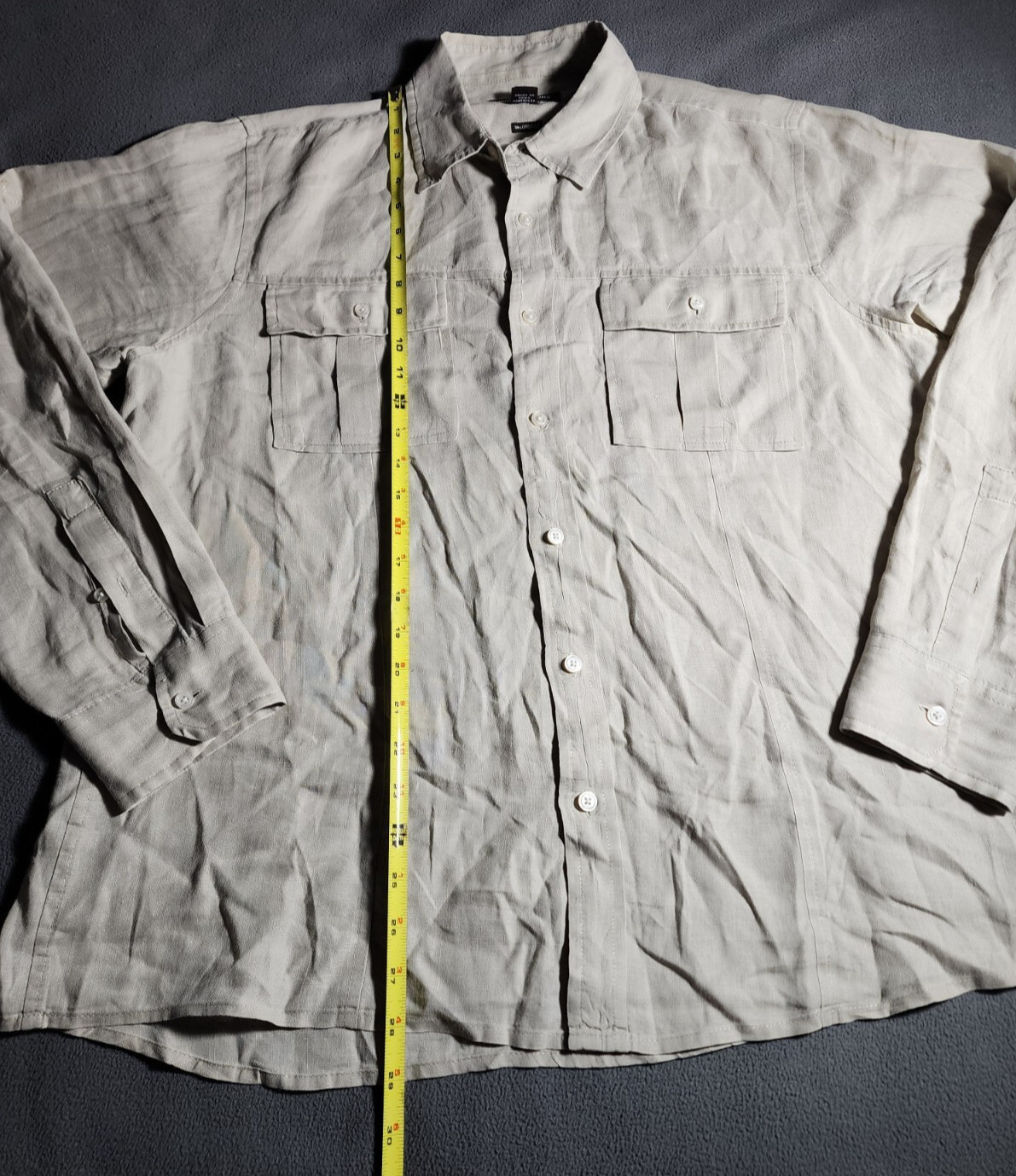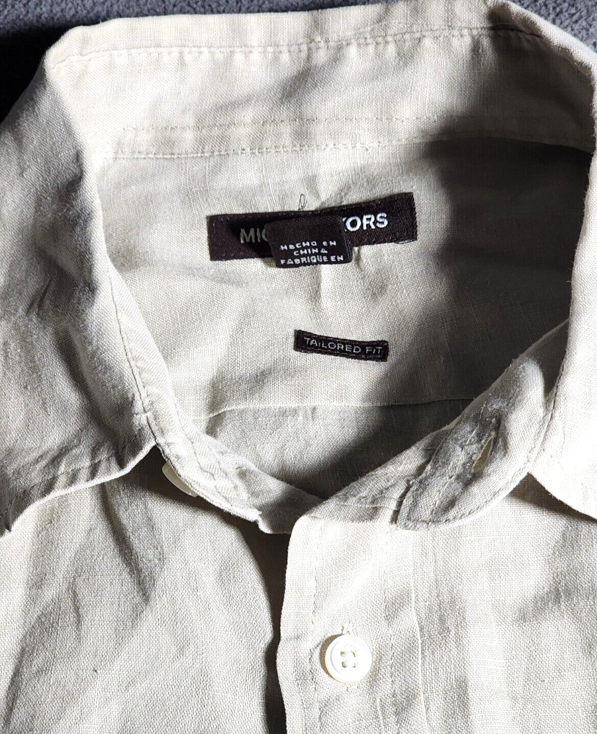 как выглядит Michael Kors Shirt Men Large Beige Tailored Fit Casual Long Sleeve Button Up фото