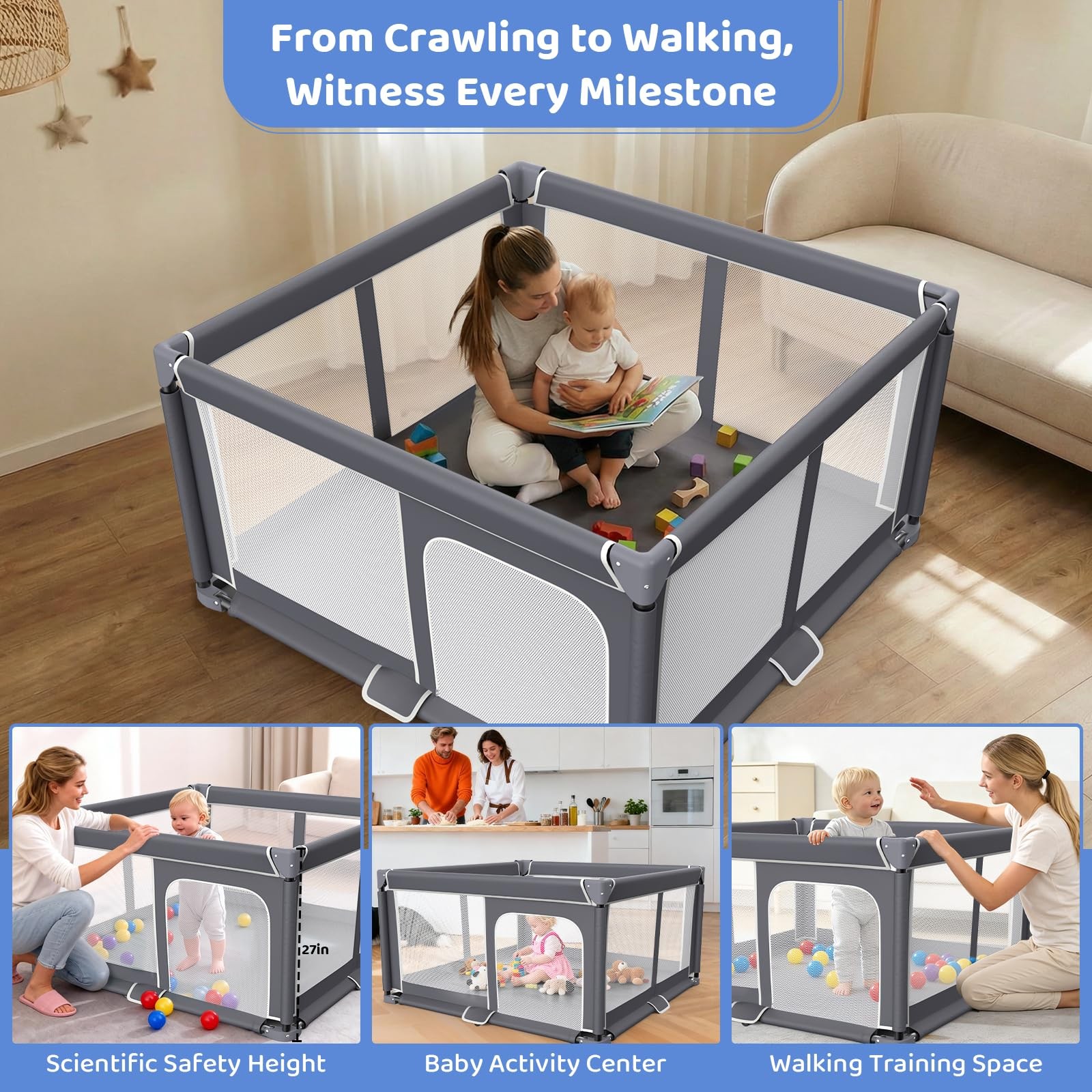 Foldable Baby Playpen - 50x50 Safety Play Yard 50 50, Dark Grey