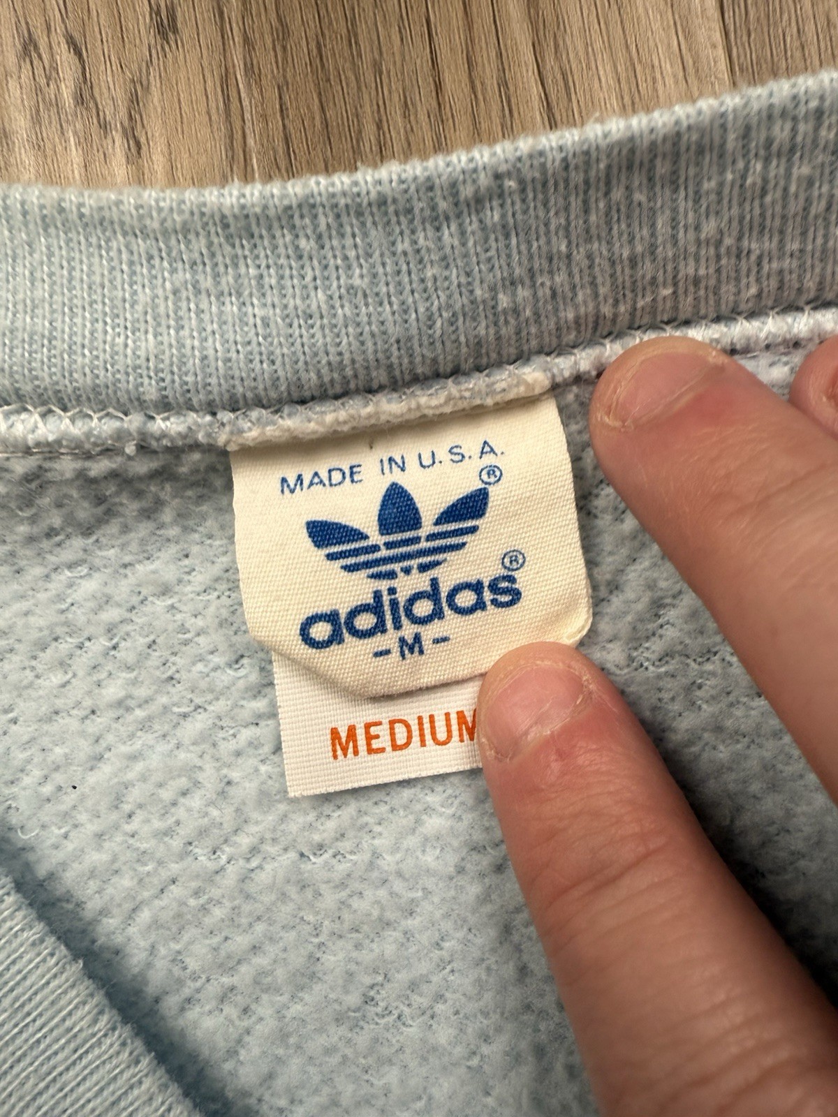 80s VINTAGE Adidas Baby Blue Pullover Sweatshirt Size Medium Made in USA Women s
