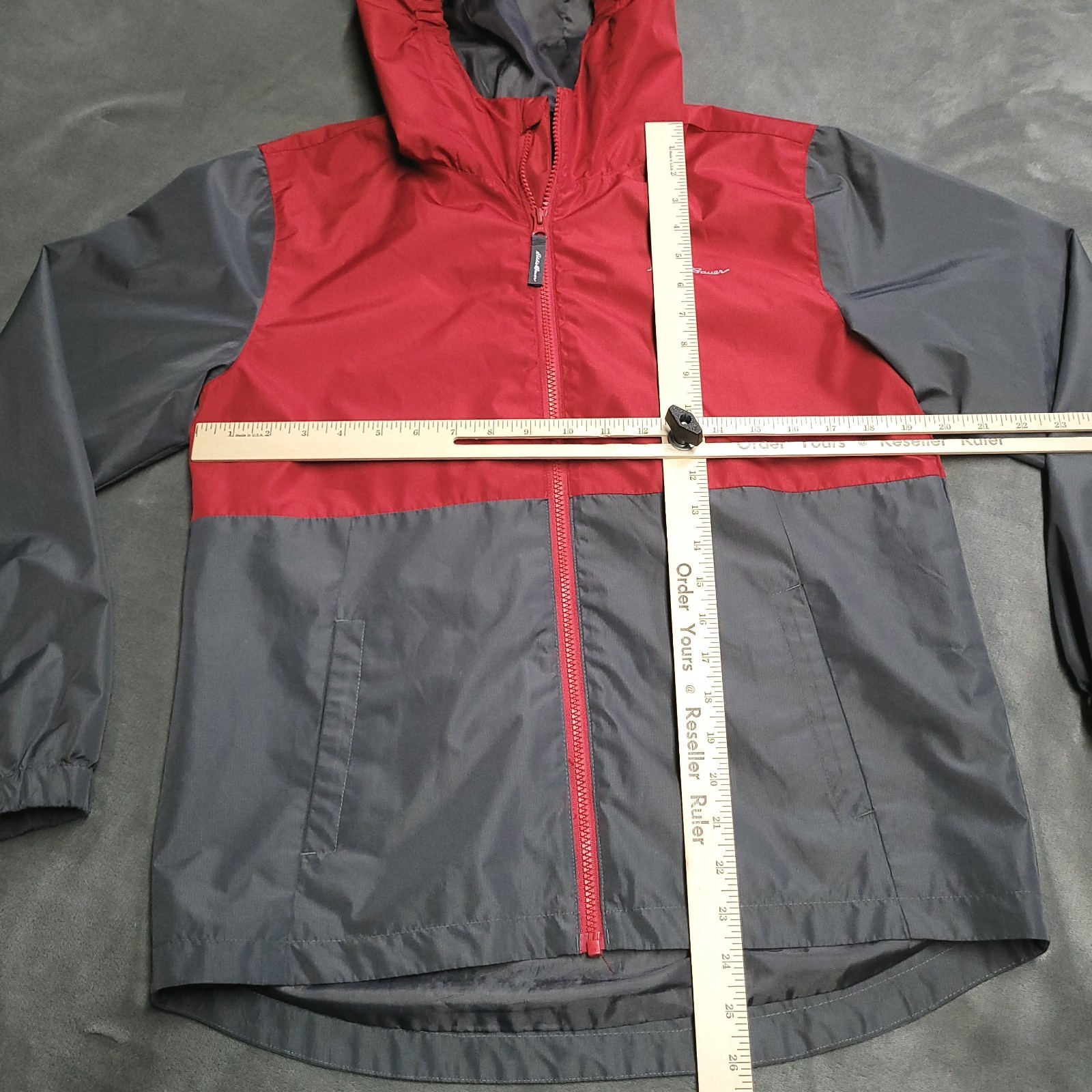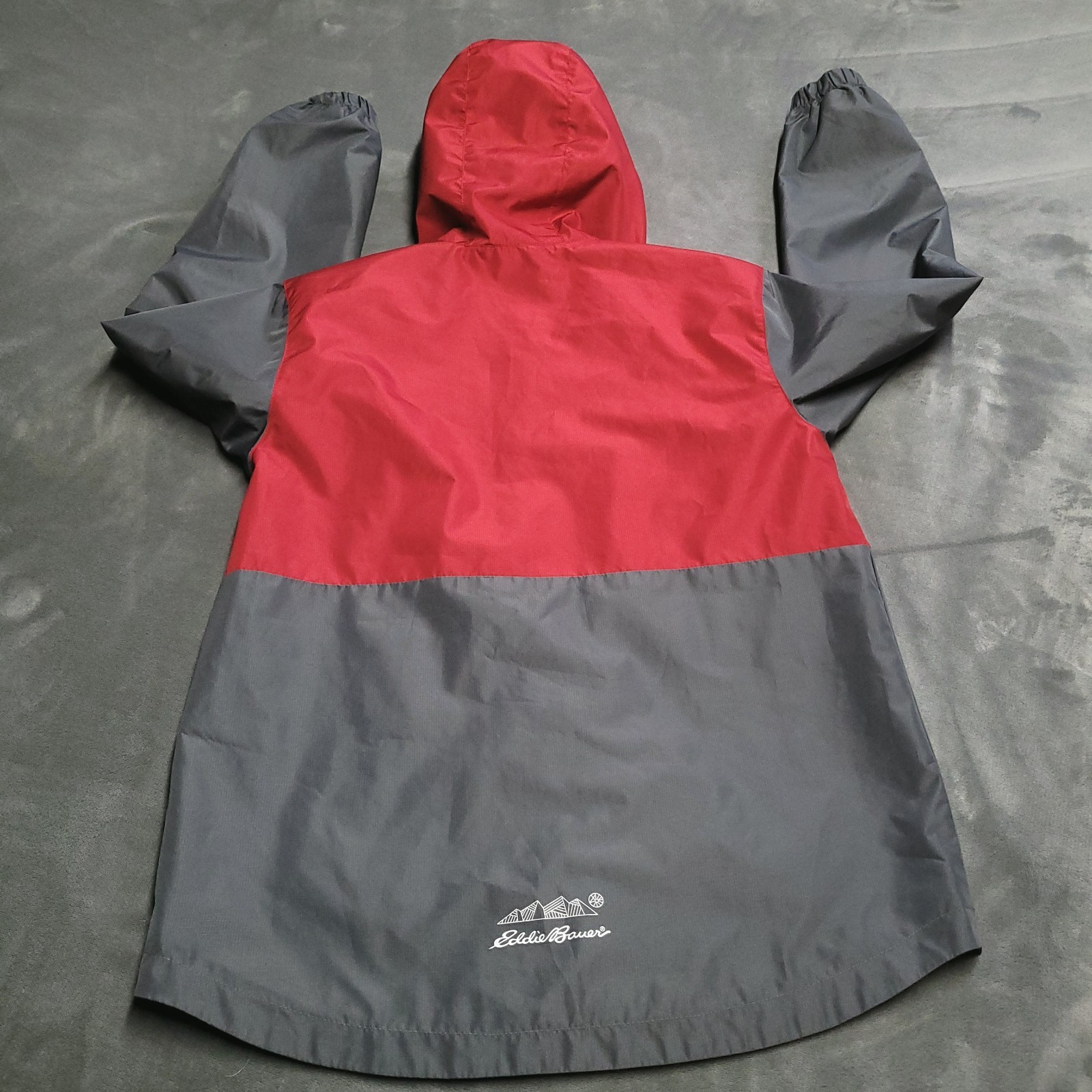 как выглядит Eddie Bauer Jacket Youth Gray Red 14/16 Full Zip Rain Lightweight Windbreaker фото