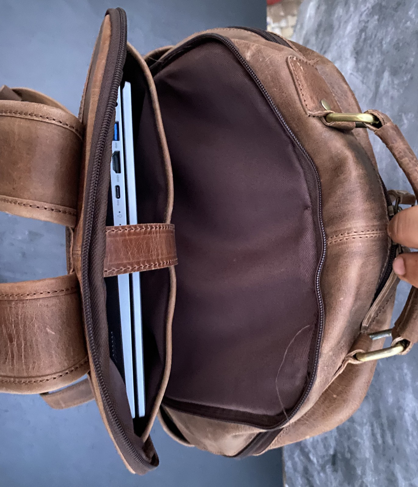 как выглядит 16 In Buffalo Leather Backpack Shoulder Bag Laptop Rucksack Office Handbags фото