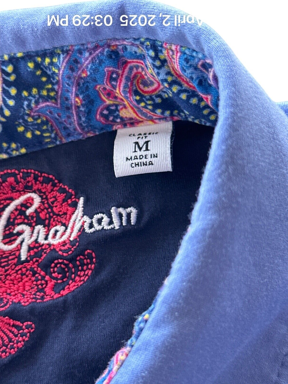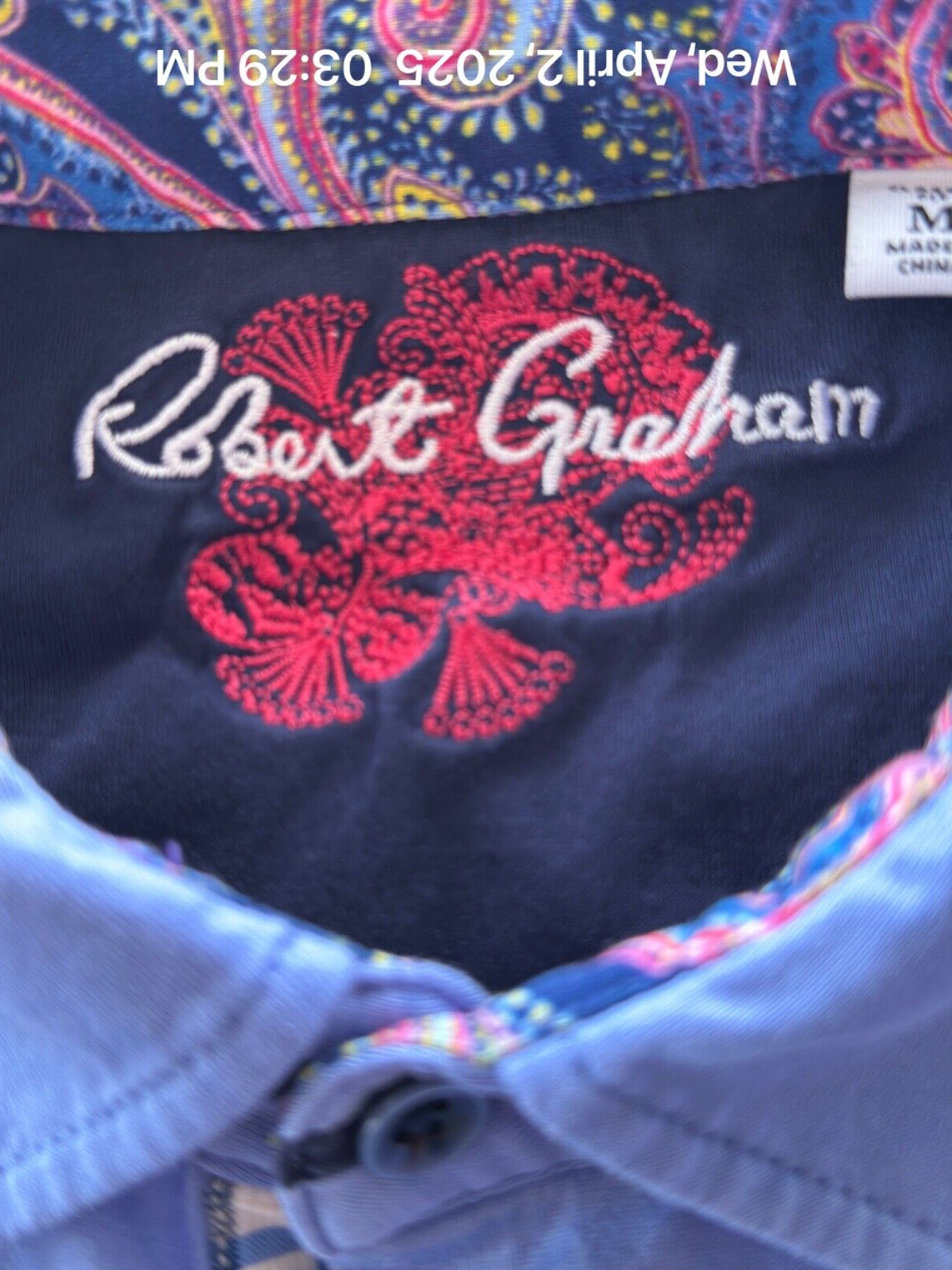 как выглядит Robert Graham Polo Shirt Mens Size Medium SS Blue Cotton Contrasting Collar Trim фото