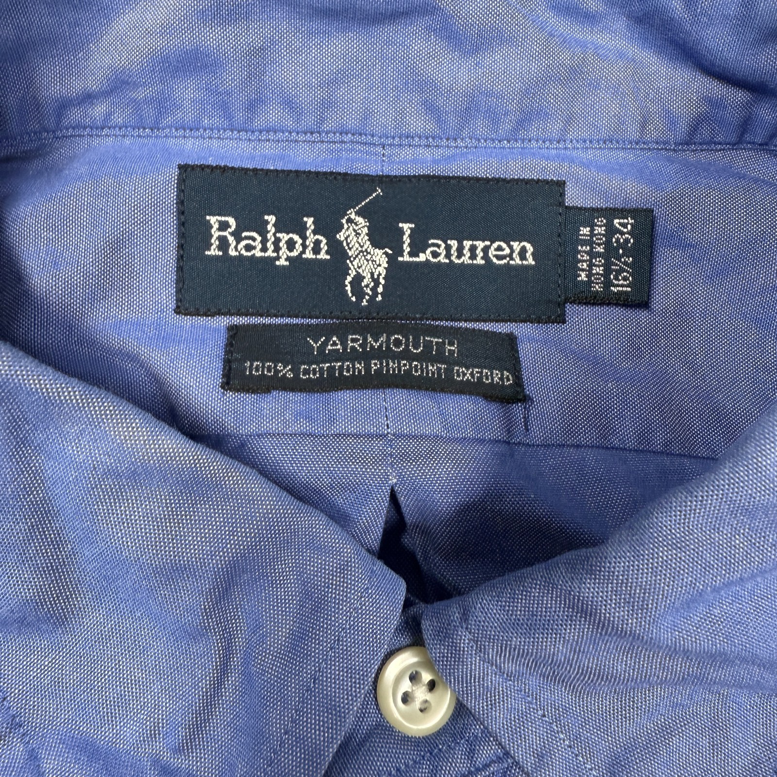 Polo Ralph Lauren Shirt Men's Blue Flesh Pony 16.5/34 Yarmouth Long Sleeve