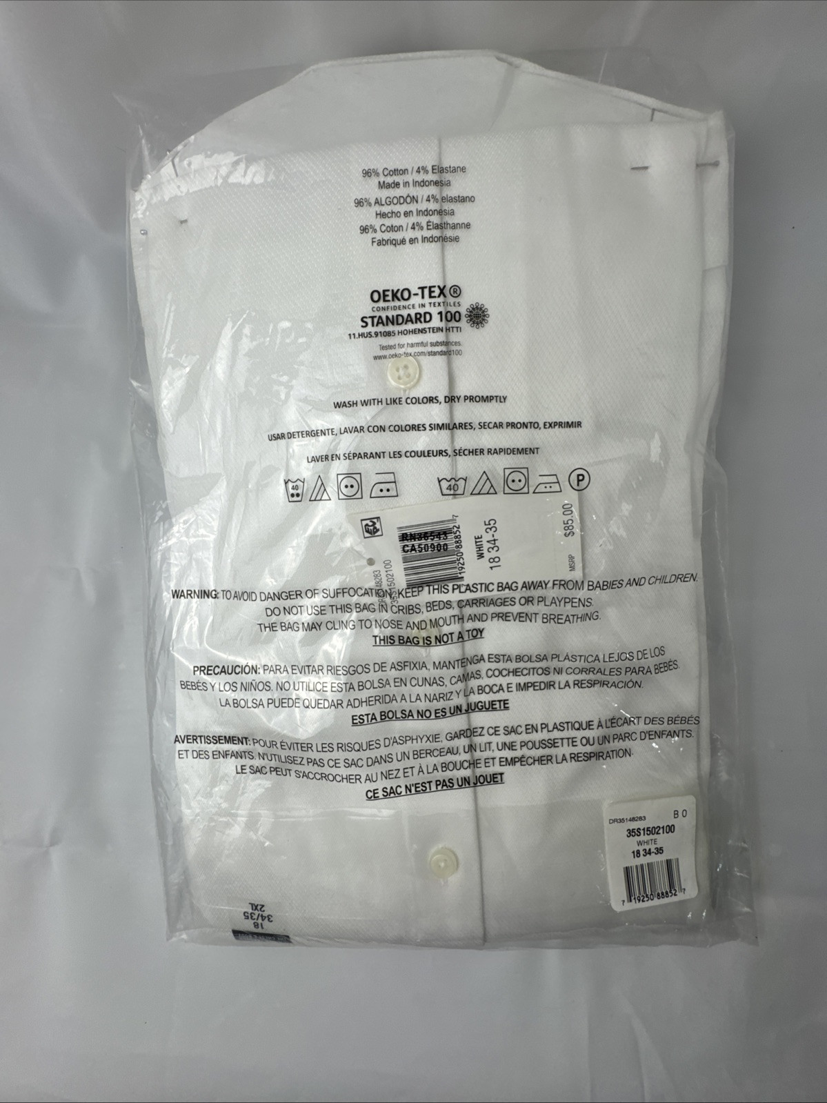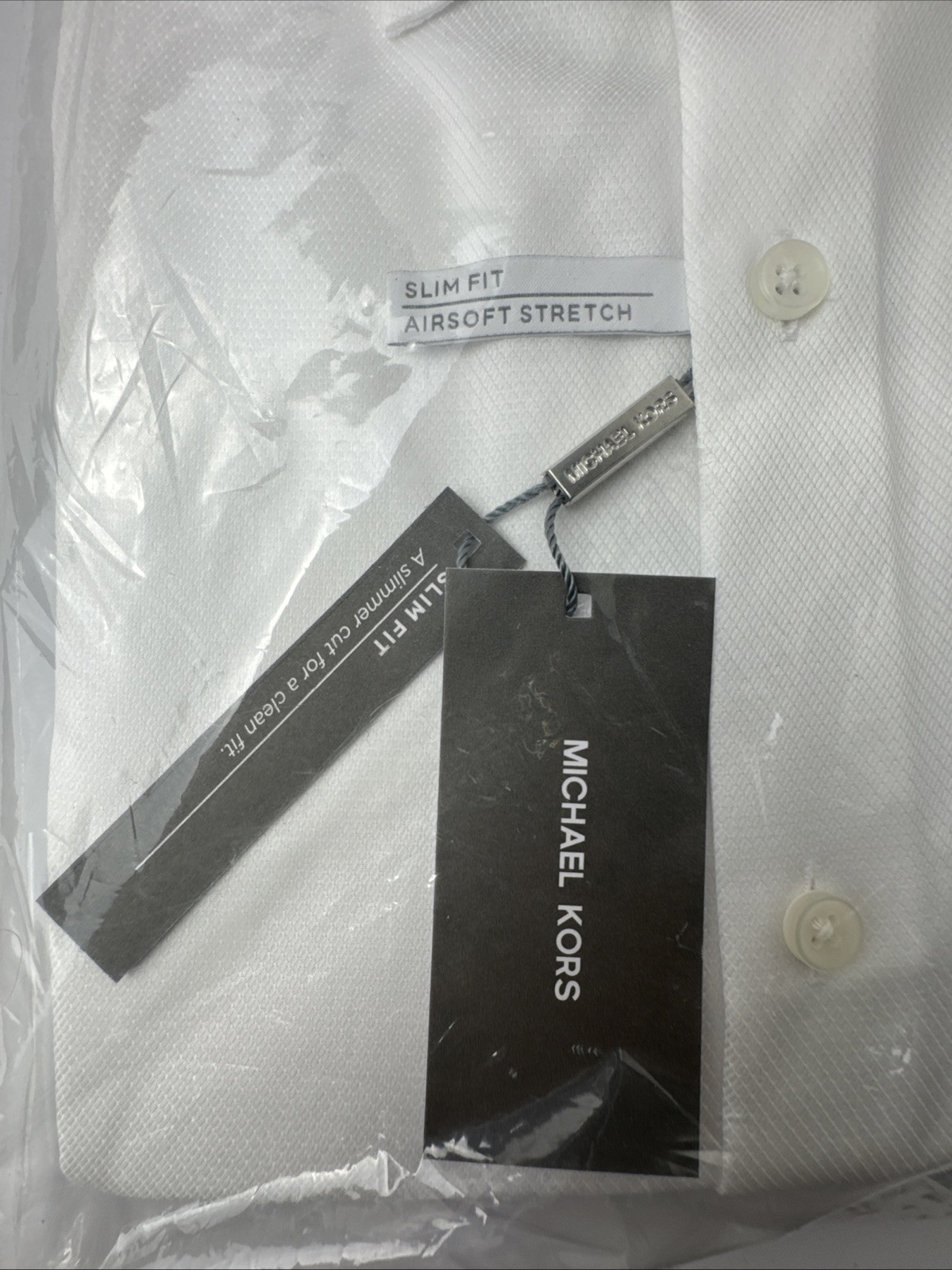 Michael Kors Men's Slim-Fit White Long-Sleeve Top Dress Shirt 18 34/35 NEW