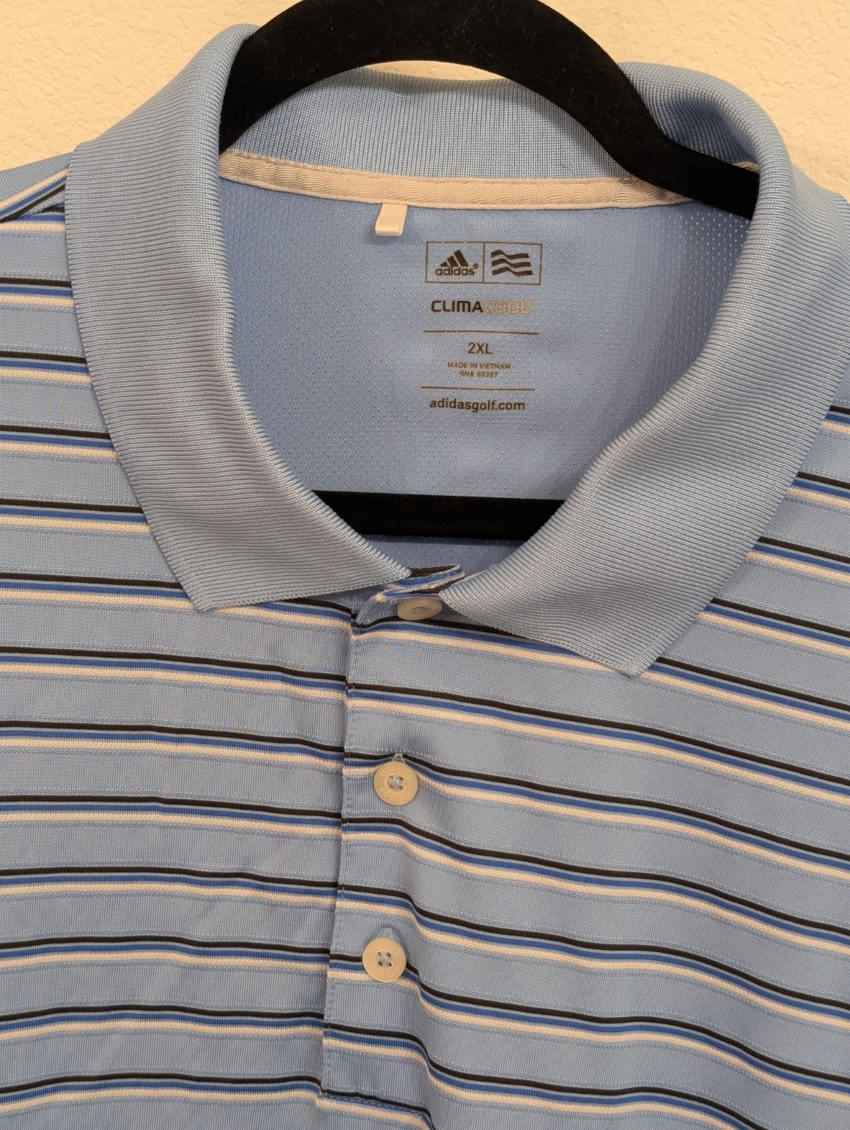 как выглядит Adidas Climacool Striped Golf Polo Shirt Men s 2XL Blue Performance Stretch фото